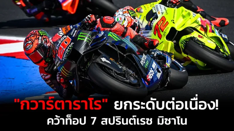 “กวาร์ตาราโร” ยกระดับต่อเนื่อง! คว้าท็อป 7 สปรินต์เรซ มิซาโน