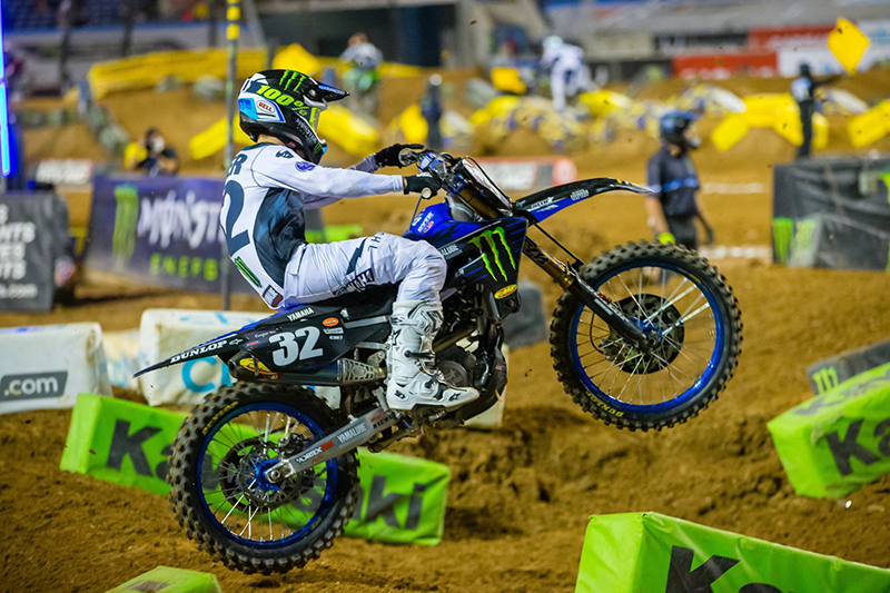 จัสติน คูเปอร์ #32 ดาวบิดแคลิฟอร์เนียน จาก มอนสเตอร์ เอเนอร์จี้ สตาร์ ยามาฮ่า เรซซิ่ง ควบรถแข่งยามาฮ่า YZ250F ซิวแชมป์รุ่น 250SX จากการชิงชัยในสนามแรก.....