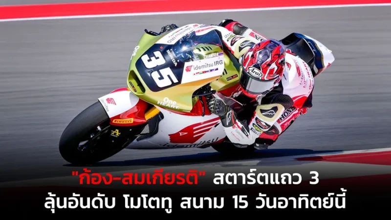 “ก้อง-สมเกียรติ” สตาร์ตแถว 3 ลุ้นอันดับ โมโตทู สนาม 15 วันอาทิตย์นี้