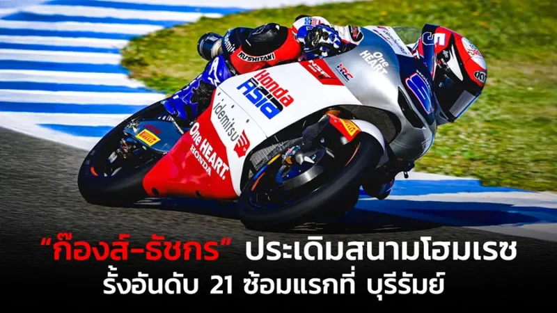 “ก๊องส์-ธัชกร” ประเดิมสนามโฮมเรซ รั้งอันดับ 21 ซ้อมแรกที่ บุรีรัมย์