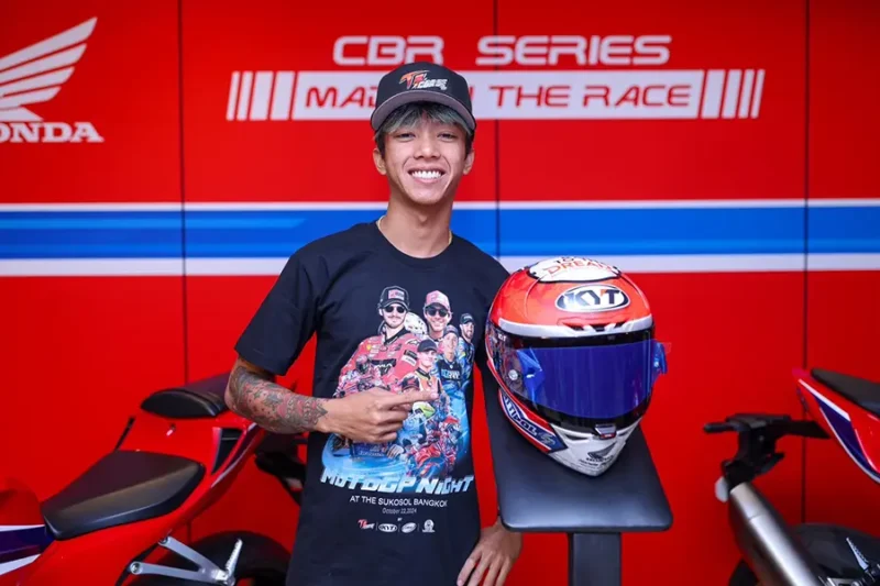 “ก๊องส์” ธัชกร บัวศรี ยอดนักบิดดาวรุ่งชาวไทยจากโครงการ “ฮอนด้า เรซ ทู เดอะ ดรีม” เปิดตัวหมวกกันน็อคลายพิเศษเพื่อใช้ลุยศึก โมโตทรี เวิลด์