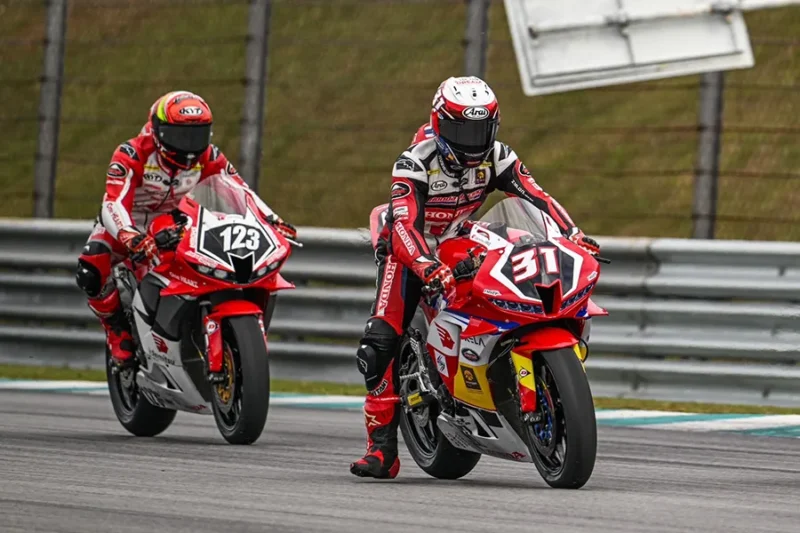 รุ่น “ซูเปอร์สปอร์ต 600 ซีซี” (SS600) ดาวรุ่งไทย “มิกซ์-ธนัช” และ “ไม้คิว-เกียรติศักดิ์” บิดรถแข่ง Honda CBR600RR ทำผลงานท้าทายกับสภาพอากาศและต่อสู้กับคู่แข่งแนวหน้าของรุ่น โดย “มิกซ์-ธนัช” หมายเลข 31 สามารถบิดขยับตำแหน่งจากกริด 12 เข้าเส้นชัยในอันดับที่ 6 ด้วยเวลา 22:03.850 นาที ด้าน “ไม้คิว-เกียรติศักดิ์” หมายเลข 85 บิดตามเข้าเส้นชัยตามมาติดๆ ในอันดับที่ 7 ด้วยเวลา 22:04.479 นาที