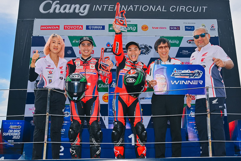 ทัพนักบิด “ฮอนด้า เรซซิ่ง ไทยแลนด์” ท้าทายลิมิตคว้าชัยชนะต่อเนื่องใน ศึก “โออาร์ บีอาร์ไอซี ซูเปอร์ไบค์ แชมเปี้ยนชิพ 2023” สนามที่ 2 โดยสองนักบิดจากโครงการ “เรซ ทู เดอะ แชมป์เปี้ยน” อย่าง “มุกข์” มุกข์ลดา สารพืช และ“ชิพ” นครินทร์ อธิรัฐภูวภัทร์ บิดสุดยอดตัวแข่ง Honda CBR Series คว้าชัยชนะในการแข่งขันรุ่น ซูเปอร์ไบค์ 1000 ซีซี เอสบี1โปร กับรถแข่ง CBR1000RR-R และ รุ่น ซูเปอร์สปอร์ต 600 ซีซี เอสเอส1โปร กับรถแข่ง CBR600R อย่างเหนือชั้น