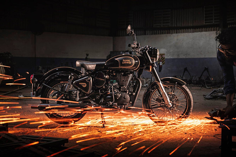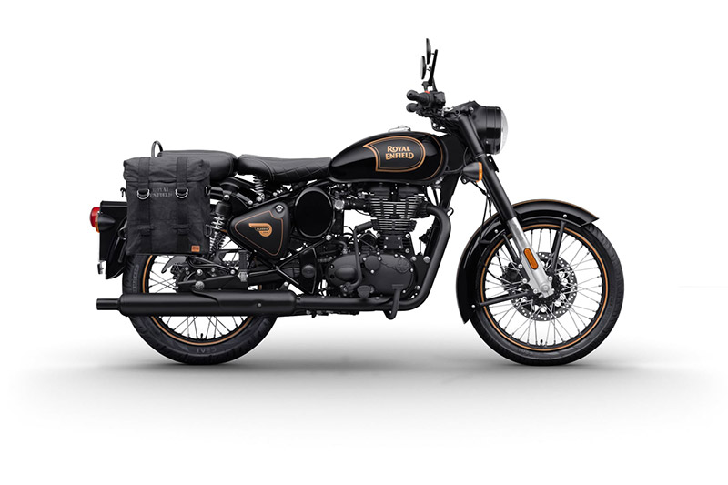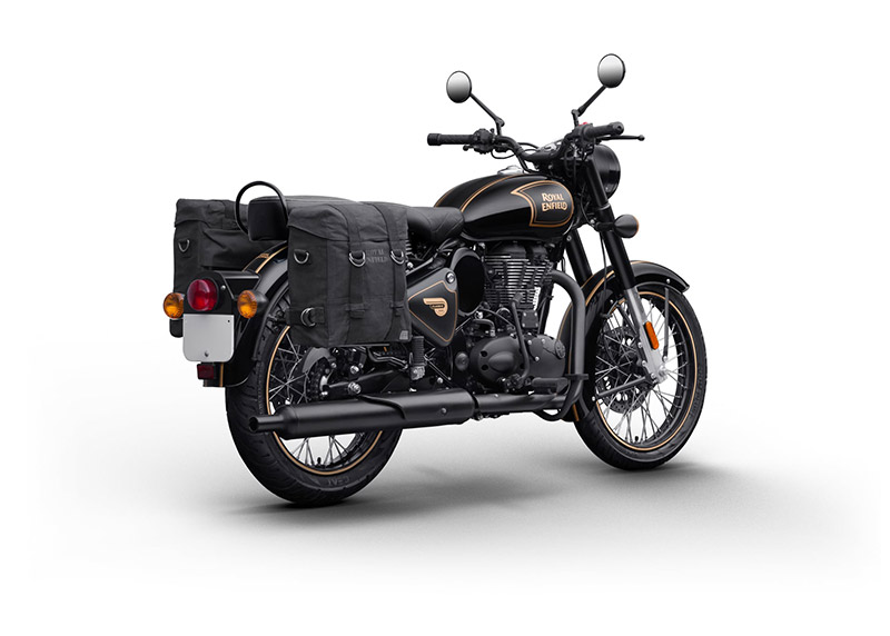 สำหรับ Classic 500 Tribute Black Limited Edition มีลายแถบบางที่โดดเด่นเหมือนกับรถจักรยานยนต์รุ่น Classic 500 ที่ออกมาจากโรงงานรอยัล เอนฟิลด์ที่เขตฐิรูโวตติยูร์ ในปีค.ศ. 2009 ครั้งนี้คือครั้งแรกที่รถจักรยานยนต์รอยัล เอนฟิลด์มีสีแบบทูโทนบนถังน้ำมันที่มีบังโคลนสีดำเงาและสีดำด้าน เฉดสีดำล้วนและเฉดสีคู่อันเป็นเอกลักษณ์นี้ช่วยเพิ่มสัมผัสที่ไม่เหมือนใครให้กับความสวยงามเหนือกาลเวลาของตัวรถจักรยานยนต์ นอกจากนี้ยังมีตรา End of Builds Special Edition
