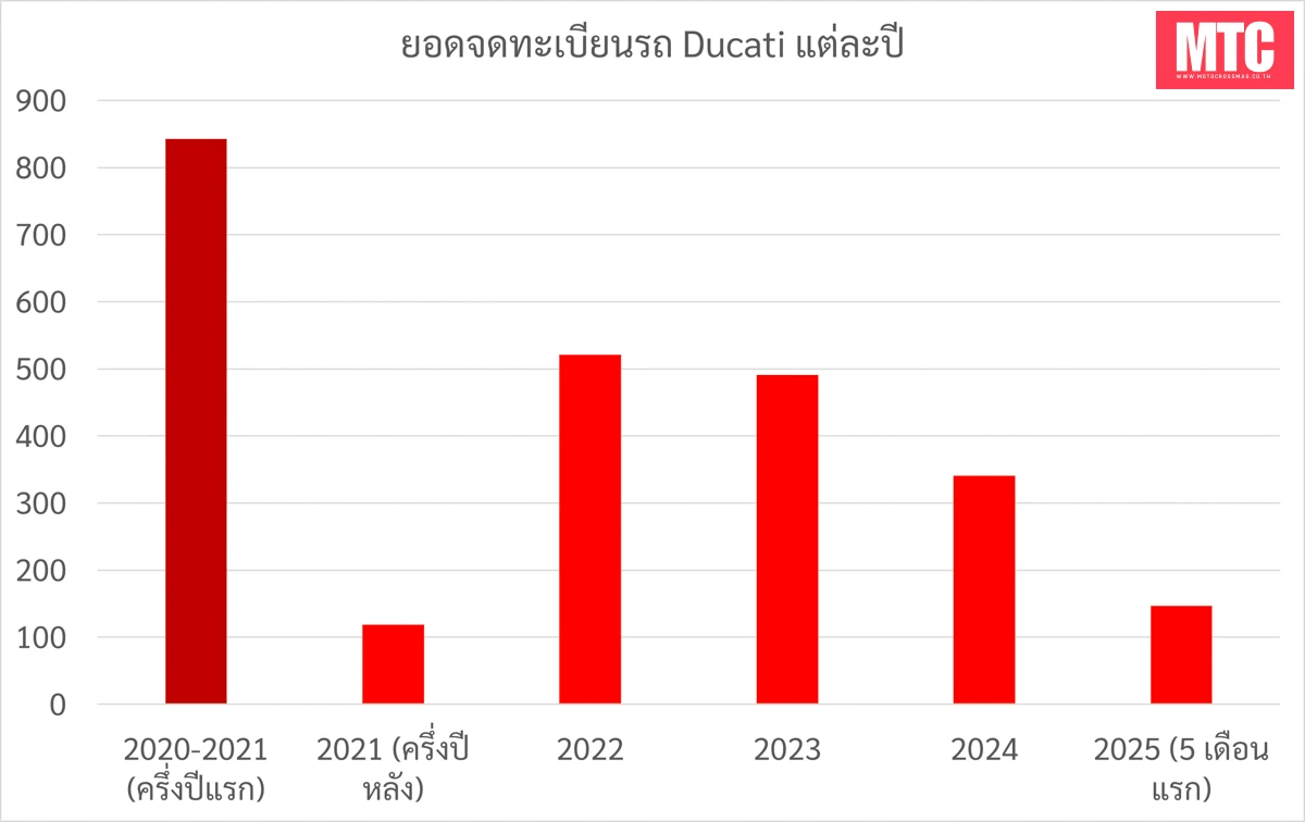 Ducati กับยอดขาย 5 เดือนแรก ปี 2025 ก่อนเปลี่ยนตัวแทนในไทย