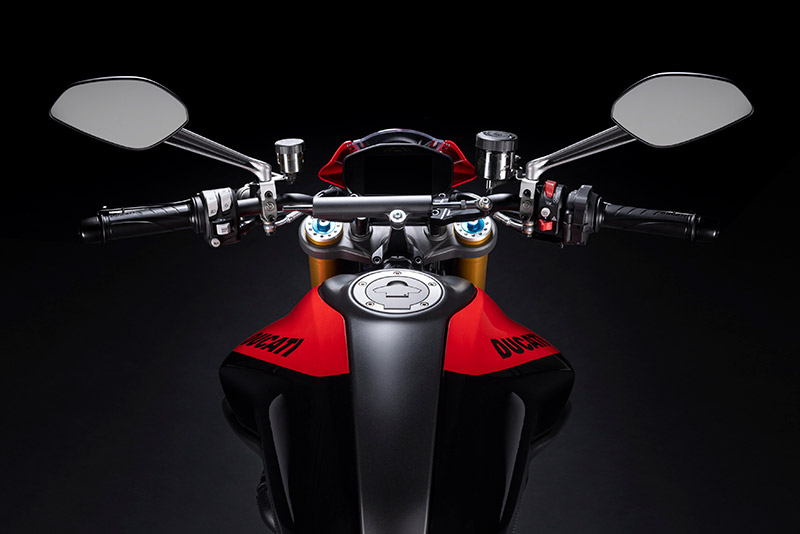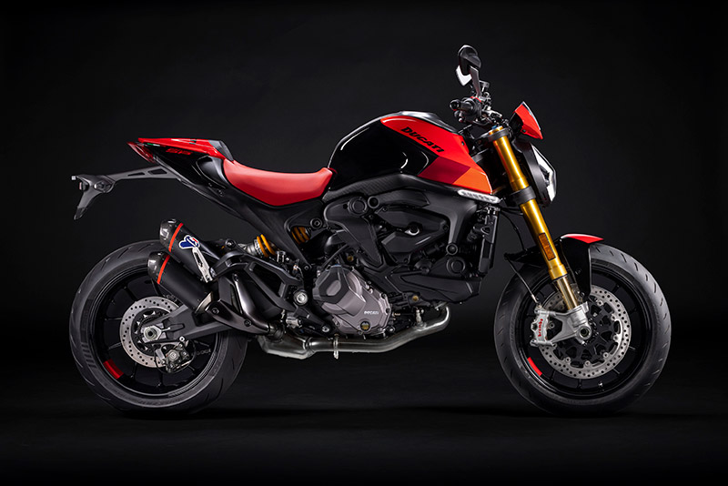 อีกหนึ่งความภูมิใจที่ถูกถ่ายทอด DNA จากสนามแข่งอย่างแท้จริง ที่ทุกคนจะได้พบในงาน Motor Show 2023 อย่างแน่นอน คือ Monster SP ซึ่งถูกปรับลดน้ำหนัก เพื่อให้ขับขี่สนุกมากยิ่งขึ้น และมีการเพิ่มเทคโนโลยีการขับขี่เพื่อความปลอดภัยของผู้ขับขี่เข้าไปอีก สำหรับ Ducati และรหัสห้อยท้าย SP นั้น จะหมายถึงรุ่นที่มีการปรับปรุงเรื่องประสิทธิภาพในการขับขี่ขั้นสูง ซึ่งปัจจุบันเราได้เห็นรหัส SP มาแล้วบนสองผลิตภัณฑ์อย่าง Panigale V4 SP และ Streetfighter V4 SP นี่จะเป็นครั้งแรกในรอบหลายๆ ปีที่รหัส SP ถูกนำมาใช้งานบนตัวรถสองลูกสูบและเป็นครั้งแรกในรอบ 7 ปีที่ Monster ได้รับรหัส SP อีกด้วย Monster SP ถูกพัฒนาโดยเน้นที่ประสิทธิภาพของช่วงล่าง การลดน้ำหนัก และการควบคุมเป็นหลัก ตัวรถจะยังคงใช้พื้นฐานเครื่องยนต์จาก Monster รุ่นมาตรฐานด้วยขุมกำลัง Testastretta 11° ขนาด 937 ซีซี. 111 แรงม้า ซึ่งเป็นนวัตกรรมที่ถือได้ว่าเป็นเอกลักษณ์ของดูคาติโดยเฉพาะ ที่ทำให้การเผาผลาญเชื้อเพลิงทำได้ดีมากยิ่งขึ้น โดยมาพร้อมชุดท่อไอเสีย Termignoni แบบปลายคู่ ระบบกันสะเทือนทั้งหน้า-หลังเปลี่ยนมาใช้ของ OhIins เส้นผ่านศูนย์กลาง 43 มิลลิเมตร ในส่วนของโช้คหน้า USD กระบอกสีทองที่สามารถปรับได้ทุกค่า ระบบกันสะเทือนถูกจูนให้เหมาะกับการใช้งาน ความสูงโดยรวมของตัวรถ 810 มิลลิเมตร เพื่อให้ผู้ขี่สามารถเอียงรถตอนเข้าโค้งได้ดีมากยิ่งขึ้น