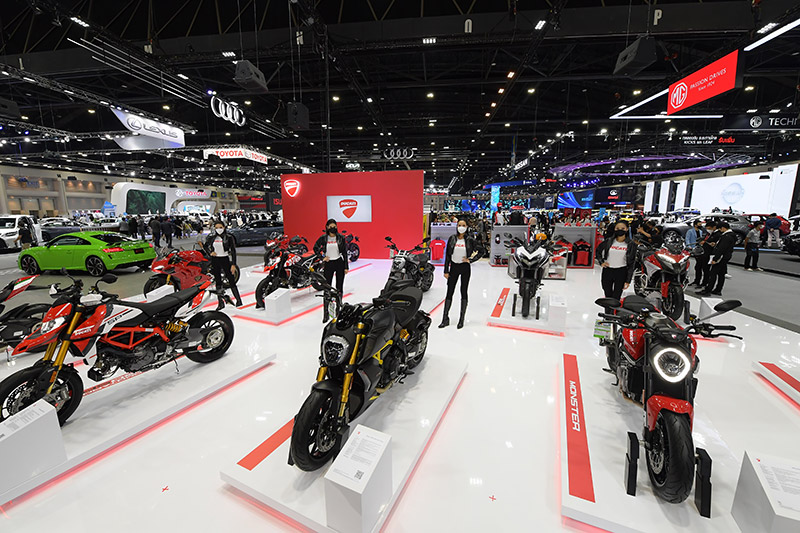 ดูคาติ ประเทศไทย เข้าร่วมงาน Motor Expo 2021 ด้วย Ducati World Premiere 2022 ที่เผยโฉมให้ไบเกอร์ในประเทศไทยได้ชื่นชมเป็นที่แรกในโลก ถึง 3 รุ่น นำโดย Panigale V2 Troy bayliss ฉลองตำนานความสำเร็จของนักแข่งชื่อดัง “ทรอย เบย์ลิสส์” ต่อเนื่องด้วย Ducati Scrambler 1100 Tribute PRO รุ่นพิเศษฉลองครบรอบ 50 ปี และ Ducati Scrambler Urban Motard สุดยอดความคลาสสิกของไอคอนอิตาเลียน พร้อมเอาใจเหล่าดูคาทิสต้าด้วยการเปิดตัวบิ๊กไบค์อีก 2 รุ่นใหม่ Diavel 1260 Black & Steel และ Hypermotard 950 SP โดยเตรียมแคมเปญและข้อเสนอพิเศษสุดคุ้มไว้ต้อนรับเหล่าไบเกอร์กับเงื่อนไขสุดพิเศษ ที่ชวนให้ต้องจัด…