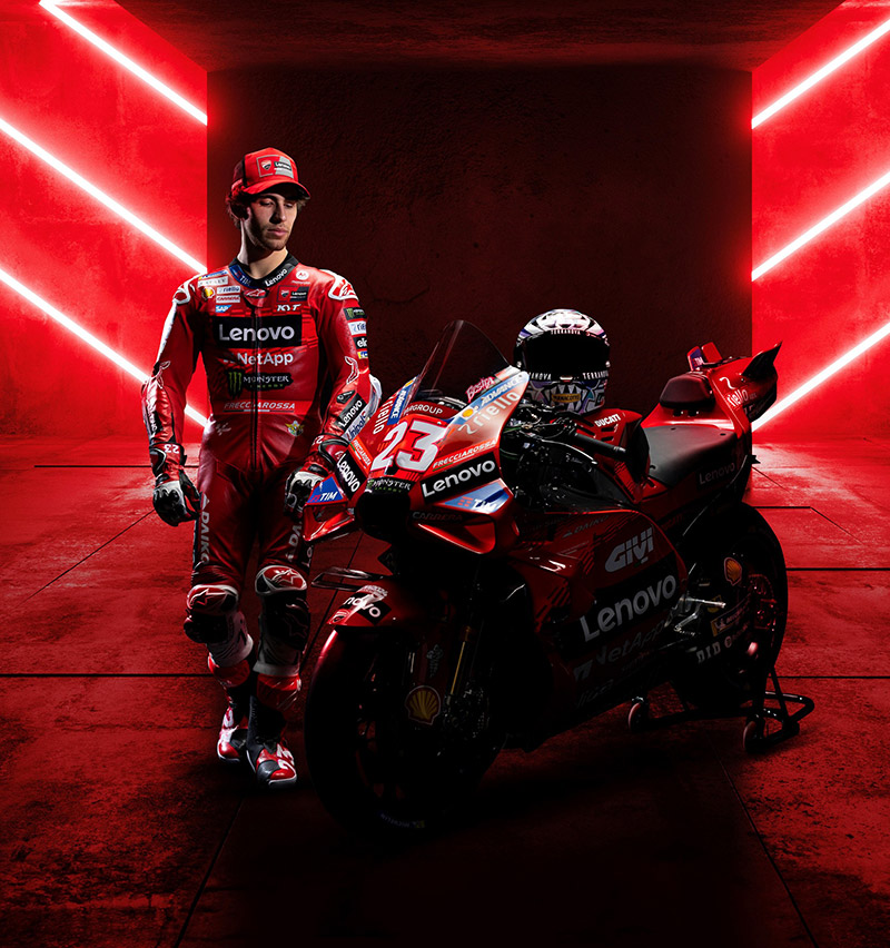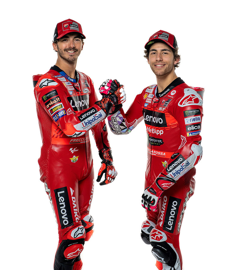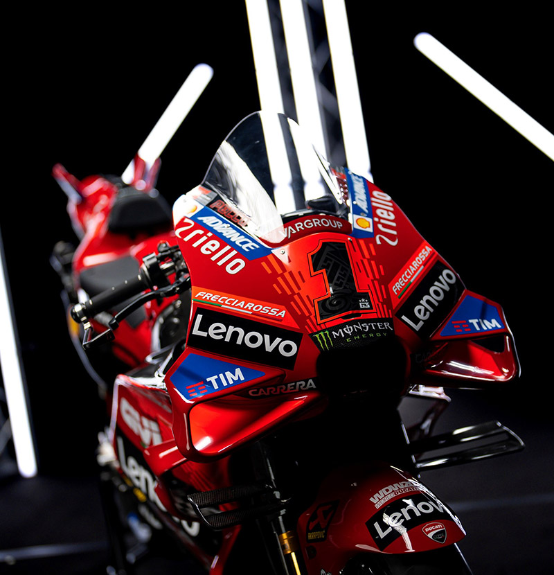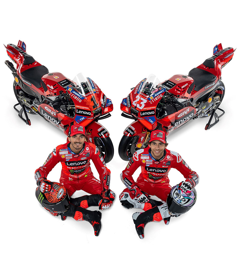สร้างความยิ่งใหญ่สะเทือนวงการไปในปีที่แล้ว ในที่สุดยักษ์แดงอิตาเลียนทีมโรงงาน Ducati Lenovo Team ก็เผยโฉมหน้าทีมงานพร้อมลุยฤดูกาล 2024 เพื่อการป้องกันแชมป์โลกและไล่ล่าแชมป์ Moto GP สมัยที่ 3 ของ  Francesco Bagnaia ซึ่งใช้เบอร์ 1 ต่อไป  ขณะที่ทีมเมท Enea Bastianini เบอร์ 23 ตามล่าฝัน ก็เป็นอีกคนที่ได้ลุ้น แฟนๆดูคาติคงอยากให้เปิดฤดูกาลไวๆจะได้เห็นประสิทธิภาพของ Desmosedici gp24 ให้สมอยาก!