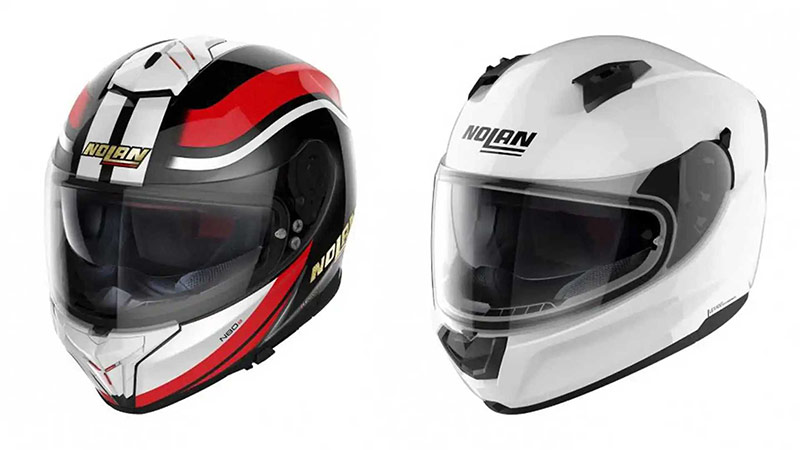 หมวกเต็มใบ (Full Face): หมวกกันน็อกที่มีการป้องกันรัดกุมที่สุด กระจายแรงกระแทกได้ทั่วถึงและดีที่สุด พร้อมชิลด์หน้า “ไม่แตกหัก” เมื่อได้รับแรงกระแทก (จากลูกบอลเหล็กที่พุ่งเข้ามาหาด้วยความเร็ว 215 กม./ชม. ในห้องทดสอบ)..