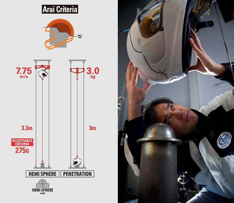 หมวกที่มีชิลด์ 2 ชั้น : เช่นเดียวกับหมวกที่ไม่มีแว่นกันแดดภายใน “ต้องไม่แตกหัก หรือผิดรูปร่างเมื่อได้รับแรงกระแทกจากลูกเหล็กที่ความเร็ว 215 กม./ชม. ในห้องทดสอบ)