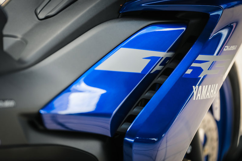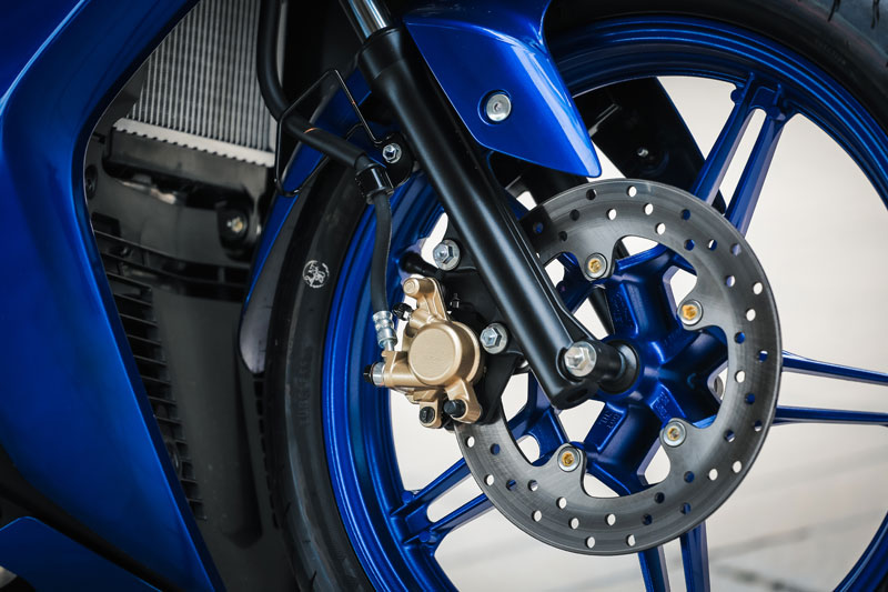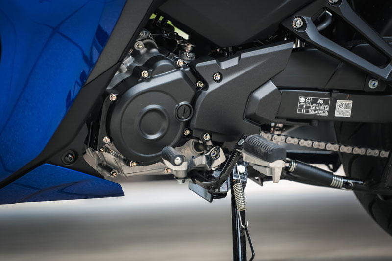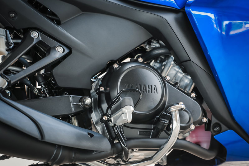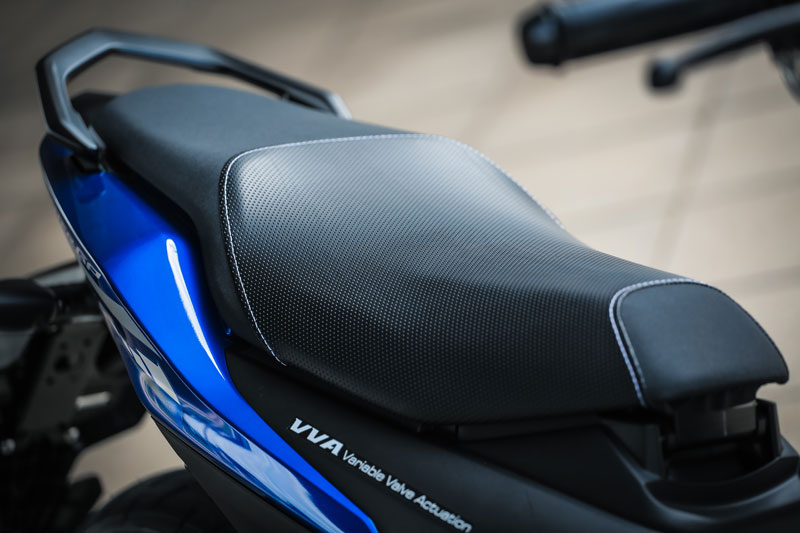 เรื่องใหญ่ที่เปลี่ยนแปลงอย่างชัดเจนคือ “เครื่องยนต์” ขยับมาใช้บล็อคใหม่ 155 ซีซี.DOHC ระบายความร้อนด้วยน้ำ (ลูกสูบ 58.0 x ช่วงชัก 58.7 มม.) พร้อมระบบวาล์วแปรผัน VVA (ทำงานที่ 7,000 รอบขึ้นไป) เกียร์ 6 สปีด …จากที่ลองขับขี่เต็มสมรรถนะ เครื่องยนต์บล็อคนี้ให้ย่านกำลังสมูทดีมาก ต่อเกียร์ได้สนุกครับ (เกียร์แบบสปอร์ต กดลง 1 แล้วงัดขึ้น -อัตราทดของเกียร์ 6 เป็นแบบโอเวอร์ไดรฟ์ทดรอบ) ความเร็วปลายทำได้ 142 กม./ชม.และมี Assist & Slipper Clutch ทำให้การใช้งานคลัทช์มือทำงานร่วมกับจังหวะเชนจ์เกียร์ ได้ฟีลลิ่งที่นุ่มนวลมาก …เครื่องบล็อคนี้ยังมีจุดเด่นเรื่องกระบอกสูบไดอะซิลขึ้นชื่อว่าแกร่งและอึดสุดๆ