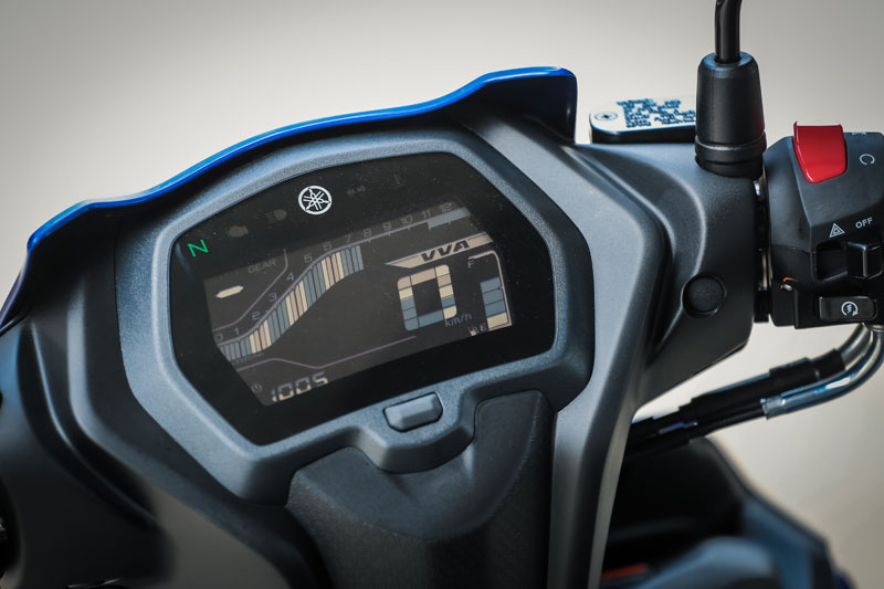 ความโดดเด่นอยู่ที่หน้าจอเรือนไมล์ดิจิทัล Full LCD ซึ่งยามาฮ่าออกแบบวัดรอบให้อยู่ด้านบน วางเลขบอกเกียร์ให้เห็นชัดตรงมุมซ้าย เลขความเร็วอยู่เกือบกึ่งกลาง ส่วนมุมล่างขวาเป็นมาตรวัดระดับเชื้อเพลิง และยังเซ็ททริปได้ 2 ทริป( 1-2) เลือกดูอัตราสิ้นเปลืองเชื้อเพลิงได้ทั้งแบบ เรียลไทม์และแบบเฉลี่ยรวม(จะเลือกให้เป็น Km/h หรือ 100km/Lก็ทำได้ง่ายๆแค่กดปุ่มค้าง) นอกจากนี้ยัง นาฬิกา ,ระยะทางรวม ,ความเร็วเฉลี่ย องศาของเรือนไมล์และสีแบ็คไลต์สีน้ำเงิน-เทา ที่ชอบคือสามารถบอกสัญญาณได้ครบครันและอ่านง่ายมากๆ
