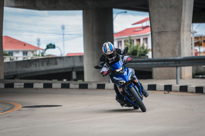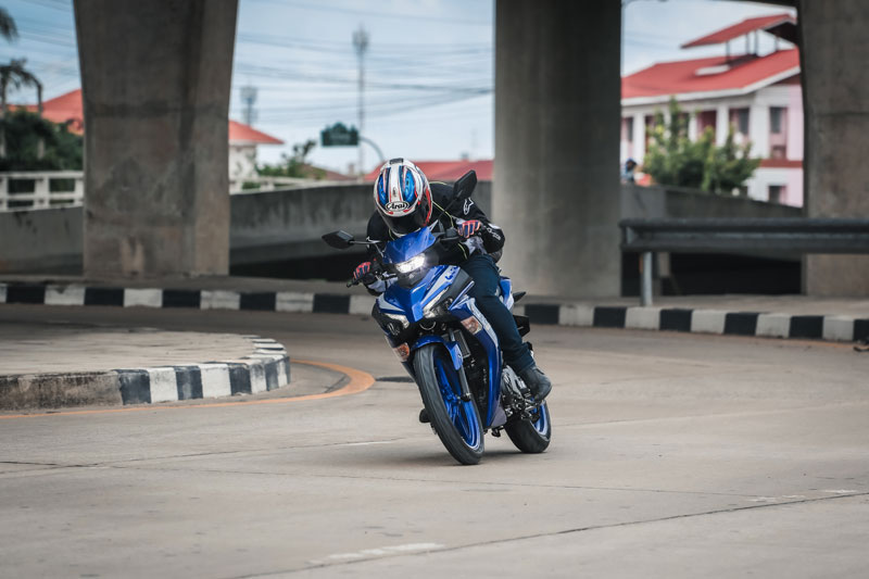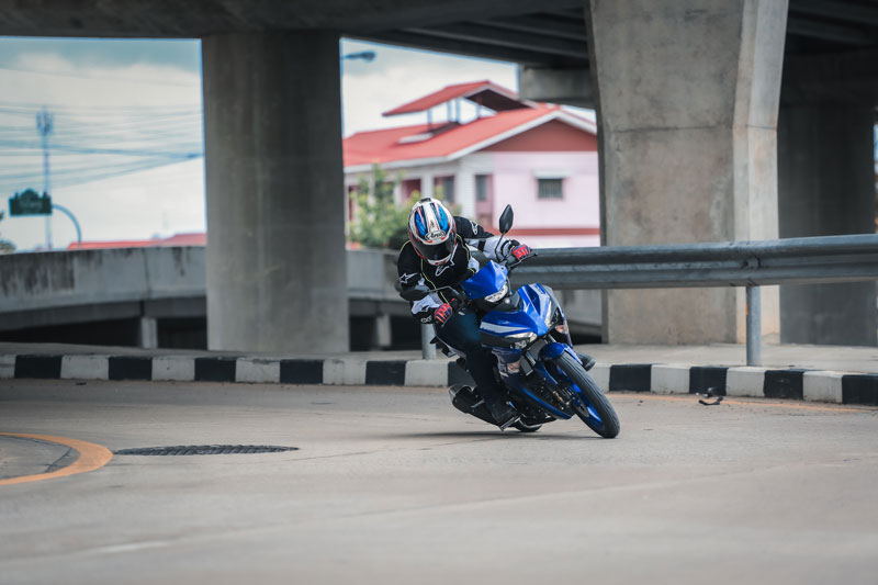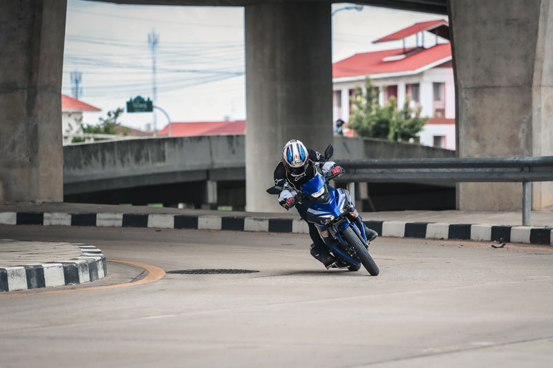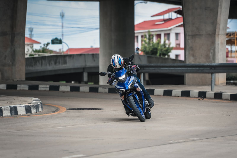 การพัฒนาขึ้นในเรื่อง “บอดี้” ส่งผลชัดต่อ “ช่วง” การควบคุมและไรดิ้งโพสิชั่น สิ่งที่ผมชอบอีกจุดคือ “ท่านั่ง” สไตล์สปอร์ต เริ่มจากเบาะทรงสปอร์ต บาง แคบ ไซส์กำลังดีและนั่งได้กระชับ ความสูงเบาะ 795 มม. ความกว้างแฮนด์เพียง 665 มม. กับทรงแฮนด์ลู่มาด้านหลังสไตล์สปอร์ต (ถ้าจับไปแต่งใส่ชุดเกียร์โยงจะได้ฟีลลิ่งสปอร์ตหล่อๆเลย) มุมคาสเตอร์ กับ ระยะเทรล์ 25.8° / 87 มม. รวมน้ำหนักรถ 119 กก. จัดว่าไปได้สวยครับกับการขับขี่ในสภาพจราจรที่หนาแน่นในเมือง เพราะมันเปรียว คล่องตัว ขับขี่ง่าย คุมง่ายจริงๆ