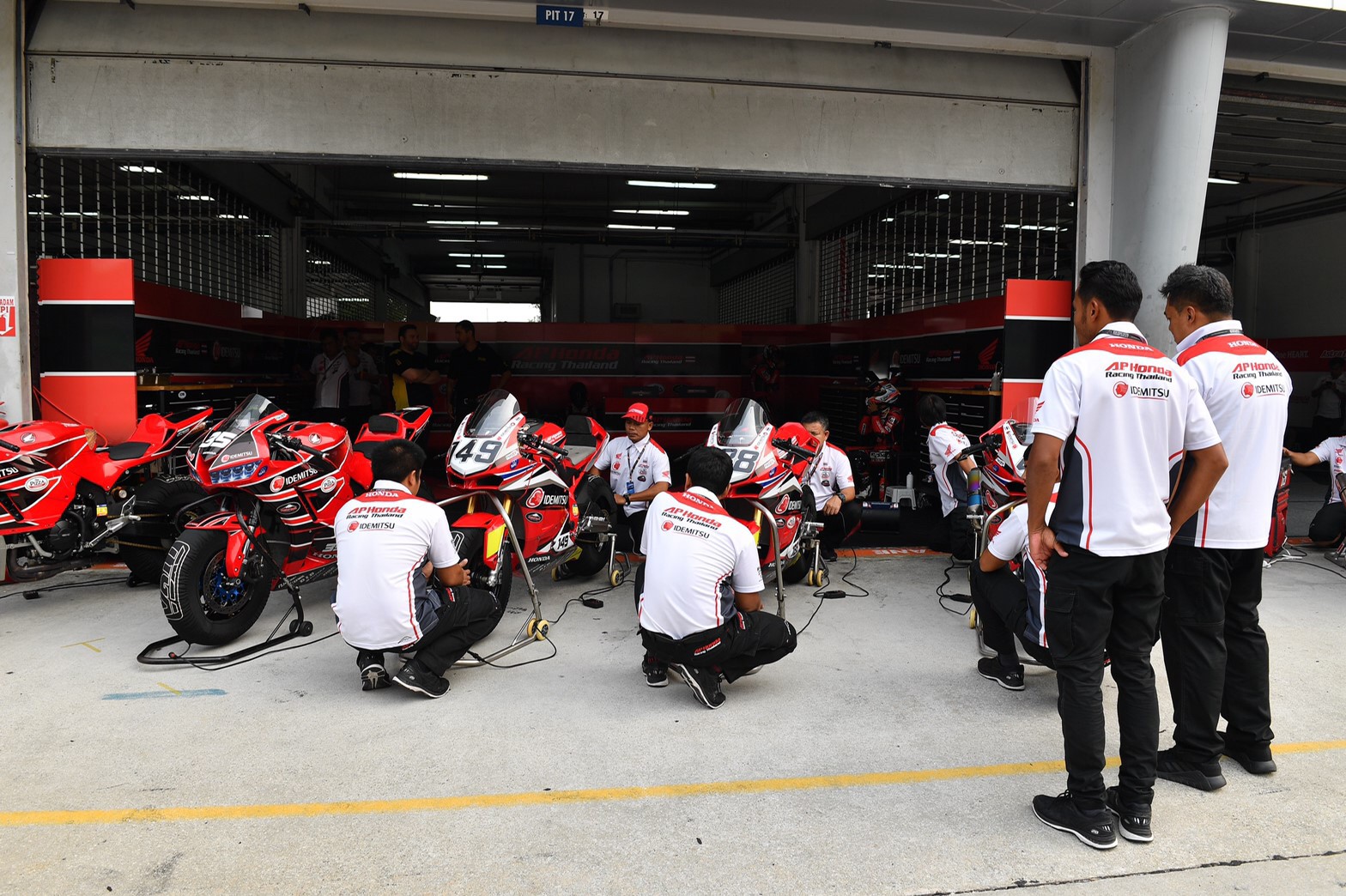 ทัพนักบิดไทยจาก เอ.พี.ฮอนด้า เรซซิ่งทีม ลงทำการซ้อมวันแรก “ฟิล์ม” ปิยวัฒน์ ประทุมยศ หมายเลข 188 และ “มุกข์” มุกข์ลดา สารพืช หมายเลข 44 ควบรถคู่ใจ Honda CBR250RR ฟอร์มเยี่ยมทำเวลารั้งอันดับ 1 และ 2 ในขณะที่ “ก๊องส์” ธัชกร บัวศรี หมายเลข 149 รั้งอันดับ 9 ตามลำดับ ในรุ่น เอเชีย โปรดักชั่น 250 ซี.ซี ลุ้นคว้าแชมป์เรซแรก ในวันที่ 21 ก.ย. นี้