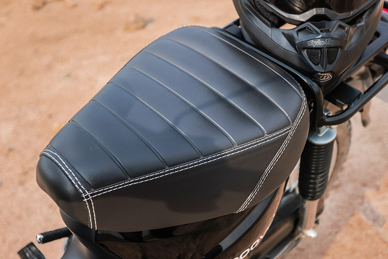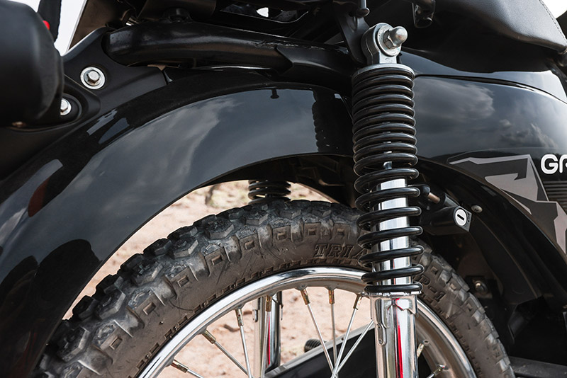 ด้วยความที่รถ Solar Groove Cross เค้าเป็นรถโมเพ็ดรุ่นพิเศษจากทางค่าย ทำให้ได้ออพชั่นยางหนามในลักษณะ “ดูอัล-เพอร์โพส” ติดรถมาด้วยน่ะครับ เลยมีคุณสมบัติในการขับขี่ได้ในทุกสภาพถนน ทางดิน ทางหิน ทางขรุขระ ผมพาเจ้า Groove Cross ไปลุยมาหมดแล้วครับ แล้วก็โช้คอัพยกสูง ยิ่งทำให้มีระยะห่างจากพื้นถึงท้องเครื่องอีกกว่า 177 มม. ยิ่งทำให้เรารู้ว่ามันพอจะไปลุยได้เส้นทาง Off-Road ได้ในระดับหนึ่ง