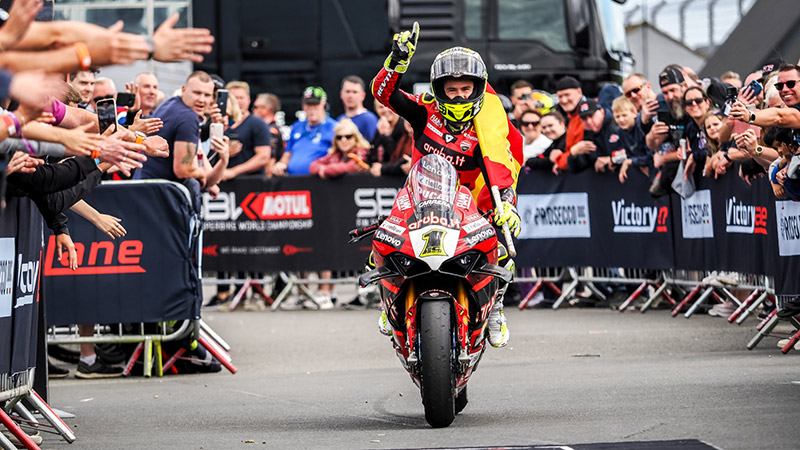 #1 Alvaro Bautista (Aruba.it Racing – Ducati) หยุดสถิติไร้แชมป์ 12 ปีของดูคาติที่สนาม Donington Park ได้สำเร็จ หลังเจ้าตัวต้องเฉือนอดีตแชมป์โลกถึง 2 คน ตลอดสุดสัปดาห์ แม้จะมีจังหวะพลาดท่าในรอบ Superpole Race ที่ถูกหยุดสถิติชนะต่อเนื่องเอาไว้ได้ แต่ก็ยังรวบแชมป์ Full Race ได้ตลอดทั้ง 2 เรซ ทำให้นาทีนี้ คะแนนสะสมของ Bautista ทะยานขึ้นไวราวติดจรวด