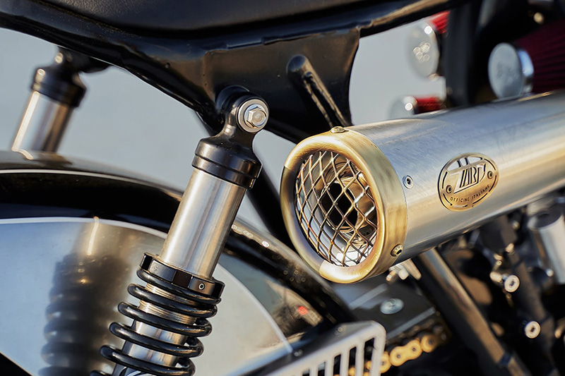 เครื่องยนต์ 865 ซีซี. แน่นอนว่าเป็นรุ่นคาร์บูเรเตอร์ งานนี้หยิบกรอง K&N มาทำให้ดีโฟล์ว และเลือกระบบไอเสีย Zard Tiger 70 แบบ 2 ออก 1 ซึ่งท่อรุ่นนี้การออกแบบมาสำหรับ Street Scrambler ยุคใหม่ (และมีน้ำหนักน้อยกว่าท่อเดิมติดรถ ราว 6กิโลกรัม)มันก็ดูดีสำหรับความ “โมเดิร์นคลาสสิก” อยู่นะ