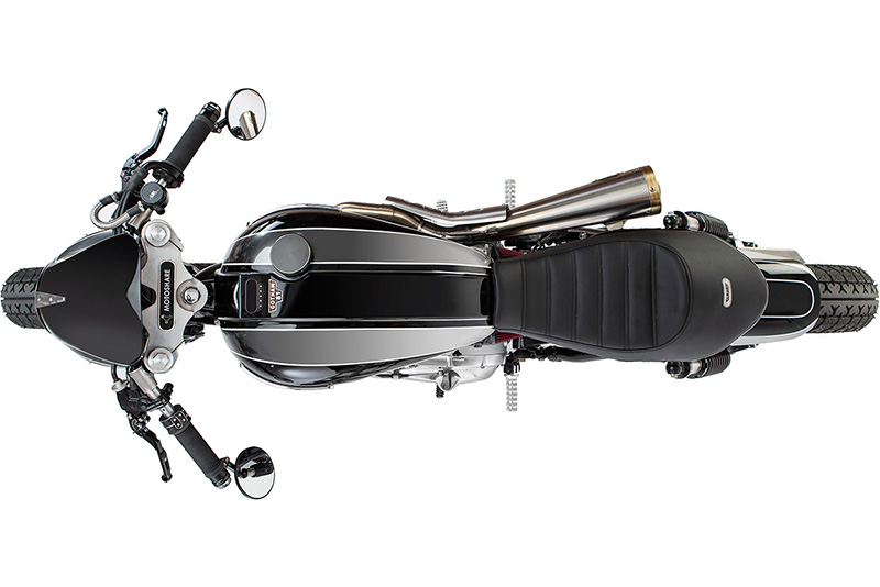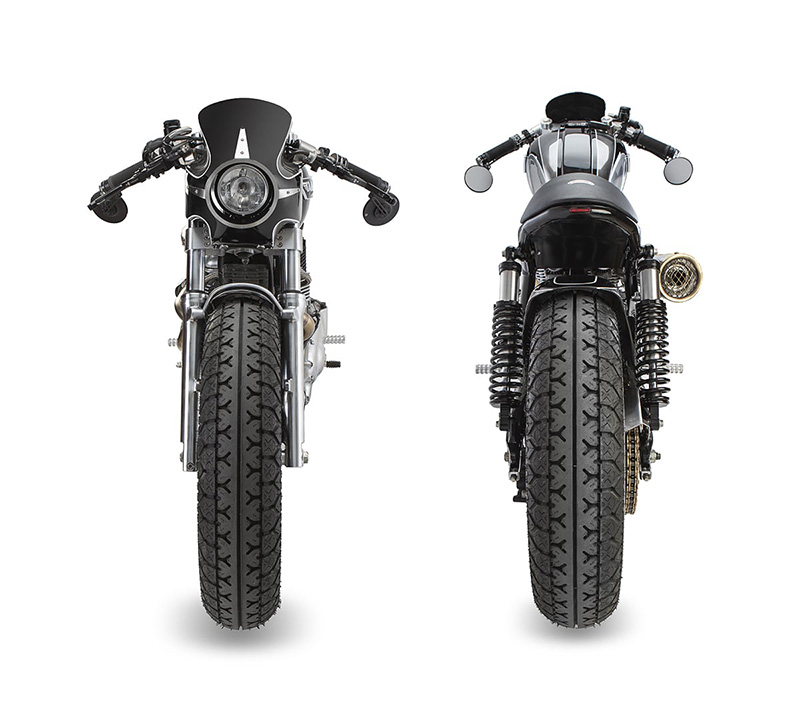 ถัดมาคือการตกย้ำในแง่ “รูปลักษณ์วินเทจ” ด้วย “โม่ง” แบบ “Gullwing Thruxton” อันน่าทึ่ง(สร้างจากอลูมิเนียมที่เว้ามุมได้งามมาก) จากนั้นทำการฝังหน้าปัด Motogadget บิลด์อินลงบนถัง ขณะที่สายไฟและระบบไฟฟ้าส่วนใหญ่ถูกย้ายไปไว้ในกล่องซ่อนมิดชิดอยู่ใต้ชุดเบาะนั่ง