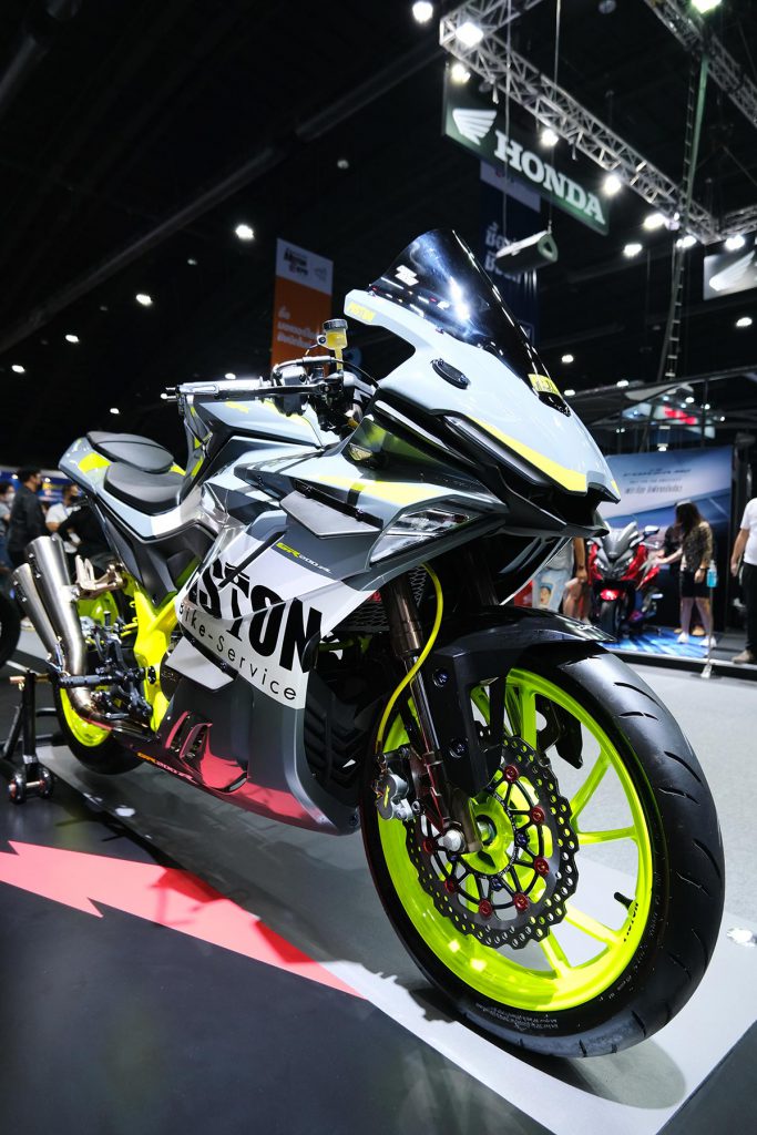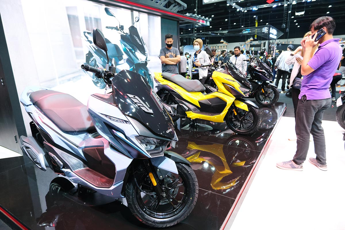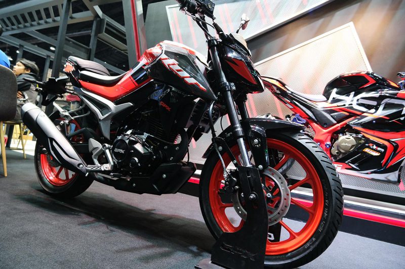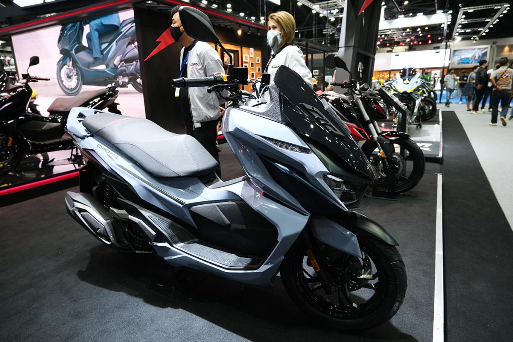 พร้อมโชว์ตัวสปอร์ตฟลูแฟริ่งNEW GPX DEMON GR200R – Da corsaที่มาพร้อมสีสันและลวดลายใหม่เพิ่มความดุดันด้วยลายเคฟล่าบนสุดแฟริ่ง2 คู่สีพิเศษคือ Rosso Red และ Carbon Black ราคา 81,500 บาทนอกจากนั้นยังได้นำฝูง GPX DRONE150 ครบทุกซีรีส์มาเป็นไฮไลต์กลางพื้นที่บูธ GPX รายล้อมด้วยรถรุ่นอื่นๆครบครัน ทั้งรถโมเพ็ดGPX ROCK , GPXLEGEND 250 TWIN II ,GPX MAD 300 MAX ,GPX RAPTOR 180 พร้อมกับ “ตัวแต่งพิเศษ” ทั้ง GR 200R สไตล์ตัวแข่งโรดเรซซิ่ง และ LEGEND 250TWIN ที่คัสตอมมาให้แฟนๆ GPX ได้ดูแนวทางกันครบแนว
