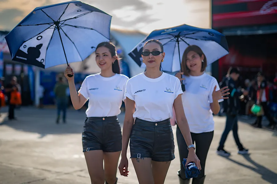 พาส่องความงามในศึก MotoGP 2025 ที่มาเปิดฤดูกาลในประเทศไทย ภายใต้ชื่อรายการ PT Grand Prix of Thailand ที่สนามช้าง อินเตอร์เนชั่นแนล เซอร์กิต จ.บุรีรัมย์ จัดเต็มทั้งในและนอกสนาม ไม่ว่าจะเป็น อัมเบรล่า เกิร์ล หรือสาวสวยประจำพิตของทีมต่างๆที่คอยกางร่มข้างกายนักแข่, “พริตตี้ตัวท็อป” จากแบรนด์สินค้าต่างๆ” นับร้อยชีวิตที่รอต้อนรับ บริเวณ บูธกิจกรรมต่างๆใน PT Grand Prix Expo ที่มี สินค้าราคาพิเศษ ของที่ระลึกโมโตจีพี สินค้าที่เกี่ยวเนื่องกับมอเตอร์ไซค์, สินค้าของตกแต่ง, สินค้ามอเตอร์สปอร์ต , กิจกรรมที่น่าสนใจจากภาครัฐและเอกชน, Meet & Greet นักบิดระดับโลกจากค่ายรถจักรยานยนต์ต่างๆ มากมาย ครบจบที่เดียว