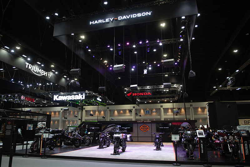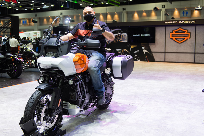 บูธ Harley Davidson ใน Motor Expo 2021 โดดเด่นด้วย Pan America™ 1250 Special รถมอเตอร์ไซค์สไตล์แอดเวนเจอร์-ทัวร์ริ่งจากการออกแบบที่ล้ำสมัยและเต็มความสามารถด้านวิศวกรรม อัดแน่นไปด้วยฟีเจอร์และสมรรถนะ มาพร้อมราคาเริ่มต้นที่ 952,000 บาท โดยเป็นครั้งแรกในวงการที่ Pan America™ 1250 Special มาพร้อมเทคโนโลยี Adaptive Ride Height ด้วยการปฏิวัติระบบกันสะเทือนแบบใหม่ ซึ่งสามารถปรับความสูงของเบาะลงขณะรถหยุดนิ่ง และปรับขึ้นในขณะรถเคลื่อนตัวเพื่อการขับขี่ที่สมบูรณ์แบบ