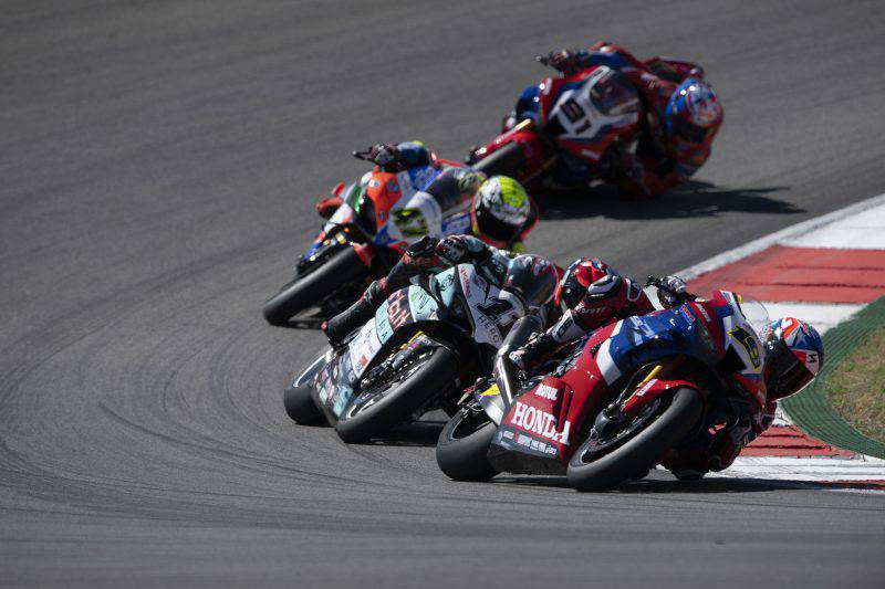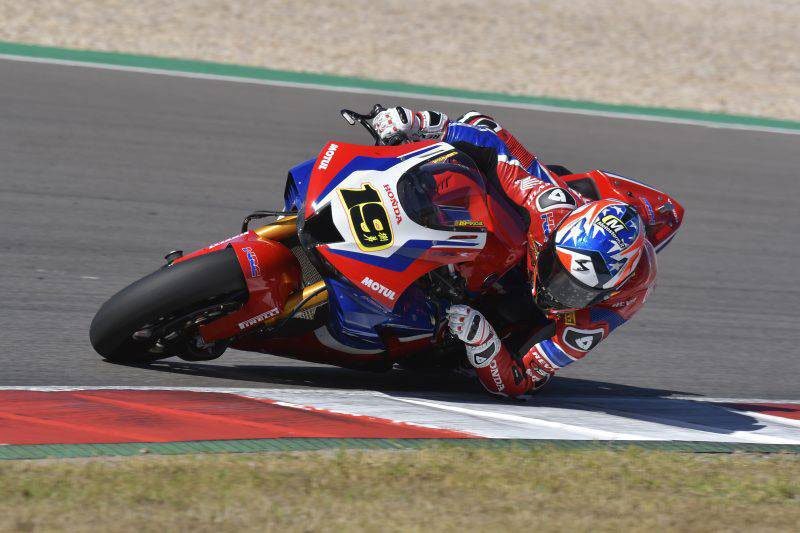 ลีออน ฮาสลัม ยอดนักบิดจอมเก๋าชาวอังกฤษจาก ทีม เอชอาร์ซี ควบรถแข่ง Honda CBR1000RR-R หมายเลข 91 ทะยานคว้าอันดับ 8 ในศึก เวิลด์ ซูเปอร์ไบค์ แชมเปี้ยนชิพ สนาม 11 ที่ปอร์ติเมา ประเทศโปรตุเกส