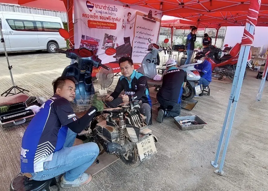 บริษัท ไทยยามาฮ่ามอเตอร์ จำกัด นำทีมช่างเทคนิค และผู้เชี่ยวชาญ ออกจุดรับบริการฟรี! ร่วมกับทีมช่างร้านผู้จำหน่าย ในพื้นที่ จ.เชียงราย และ จ.หนองคาย พร้อมการตรวจเช็กสภาพเครื่องยนต์โดยไม่เสียค่าใช้จ่าย พร้อมเปลี่ยนอะไหล่ฟรี 5 รายการได้แก่