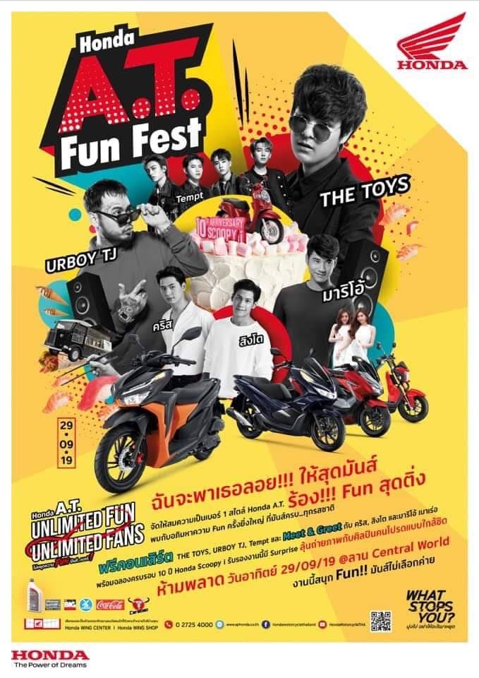 Honda A.T. Fun Fest ที่สุดของมหกรรรมความมันส์แบบนันสต็อป กับฟรีคอนเสิร์ตจากศิลปินที่ฮอตที่สุดแห่งยุค The Toys, URBOYTJ และ 4 หนุ่ม Tempt