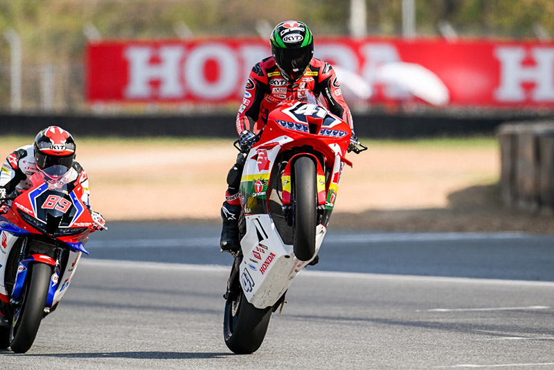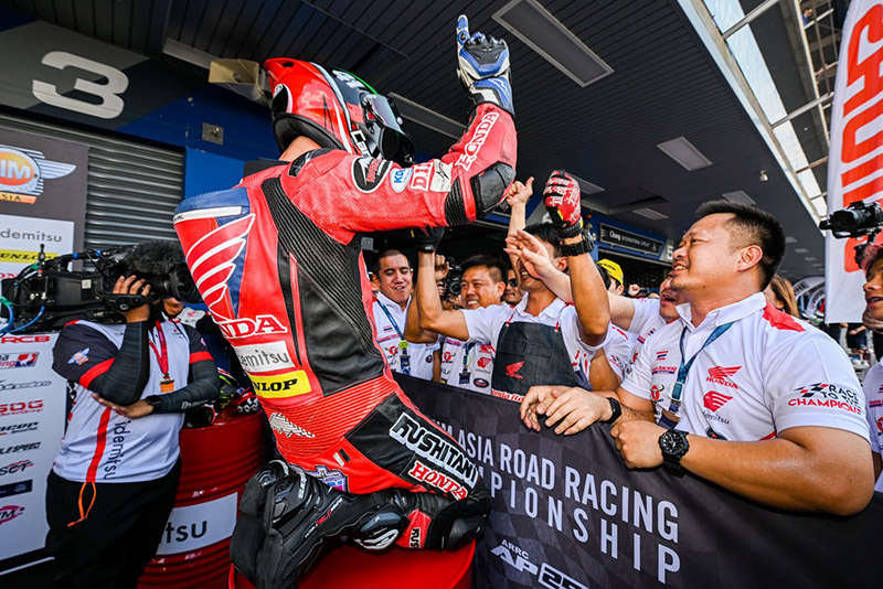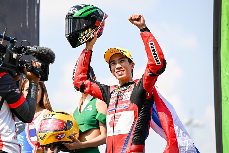 ทัพนักบิด ฮอนด้า เรซซิ่ง ไทยแลนด์ สร้างผลงานระดับมาสเตอร์ในศึกสองล้อชิงแชมป์เอเชีย “ชิพ” นครินทร์ อธิรัฐภูวภัทร์ พารถแข่ง Honda CBR600RR คู่ใจผงาดคว้าชัยโฮมเรซในรุ่น ซูเปอร์สปอร์ต 600 ซีซี เรซสอง บรรเลงเพลงเพลงชาติไทยอย่างยิ่งใหญ่ต่อหน้าแฟนความเร็วในบ้านเกิด ขณะ “ข้าวกล้อง” จักรีภัทร พฤฒิสาร ดาวรุ่งจาก “ฮอนด้า อะคาเดมี” ควงทีมเมทรุ่นพี่ “มุกข์” มุกข์ลดา สารพืช ทะยานคว้าโพเดียมส่งท้าย เอเชีย โร้ด เรซซิ่ง แชมเปี้ยนชิพ สนามแรก เมื่อวันอาทิตย์ที่ผ่านมา ณ สนามช้างฯ จ.บุรีรัมย์