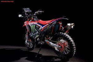 อ้อ…เรื่องราวของรถคันนี้ เกิดขึ้นเมื่อ Team HRC กลับสู่ดาการ์แรลลี่ ในปี 2013 ด้วยต้นแบบจากโมเดลตัวแข่ง enduro ซึ่งถูกนำมาปรับเพิ่มสมรรถนะในส่วนสำคัญๆ เช่นกำลังเครื่องยนต์สมรรถนะสูง บอดี้ออกแบบตามหลักอากาศพลศาสตร์ เน้นความทนทานและความต้องการบำรุงรักษาในระยะที่กว้างกว่าซึ่งใช้เป็นพื้นฐานสำหรับการออกแบบ CRF450 RALLY โดยในปี 2015 โมเดลนี้ได้รับการปรับปรุงด้วยการเพิ่มเทคโนโลยีใหม่บางส่วน รวมทั้งระบบฉีดน้ำมันเชื้อเพลิง PGM-FI ซึ่งได้รับการพิสูจน์แล้วว่ามีประสิทธิภาพแม้ภายใต้สภาพแวดล้อมที่รุนแรงและตัวแปรที่มีอยู่มากมายในดาการ์ ถัดจากนั้นมาจนถึง 2020 รถคันนี้ก็สวมกรงเล็บมอนสเตอร์แล้วคว้าแชมป์ Dakar Rally 2020 อย่างภาคภูมิใจ!!