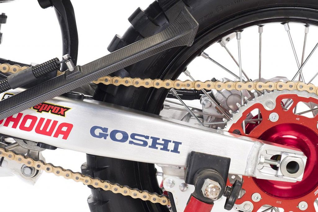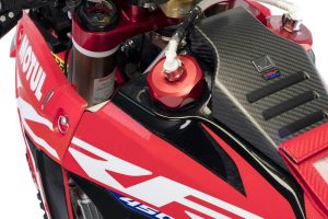 งานเก็บรายละเอียด เริ่มที่การ สร้างซับเฟรมคาร์บอนไฟเบอร์ ใต้ท้องรถ ติดตั้งการ์ดคาร์บอนเคฟลาร์ รวมทั้งมีการใช้แผ่นหุ้มหูโช้คหน้า ซึ่งใช้ระบบช่วงล่างยกชุดที่ดีสุดจาก SHOWA ทั้งหน้าและหลัง สเตอร์จาก Super Sprox วงล้อใช้ DID DirtStar STX ไฮไลท์อีกจุดคือ ถังน้ำมันตีใหม่ แบ่งให้มีฝาเติมซ้าย-ขวา ตรงตำแหน่งถังเดิม และทำไว้อีกชุดตรงแถวๆเพลทใต้เบาะ รวมความจุ 33.7 ลิตร เบาะนั่งใช้งานจากญี่ปุ่น NOGUSHI Racing ระบบหล่อลื่นจับมือกับผลิตภัณฑ์ MOTUL 300V ชุดสีและงานพลาสติกทั้งหมดจาก ACERBIS ชุดการ์ด ชิลด์หน้าจาก GIVI และระบบไอเสียรับผิดชอบโดย TERMIGNONI