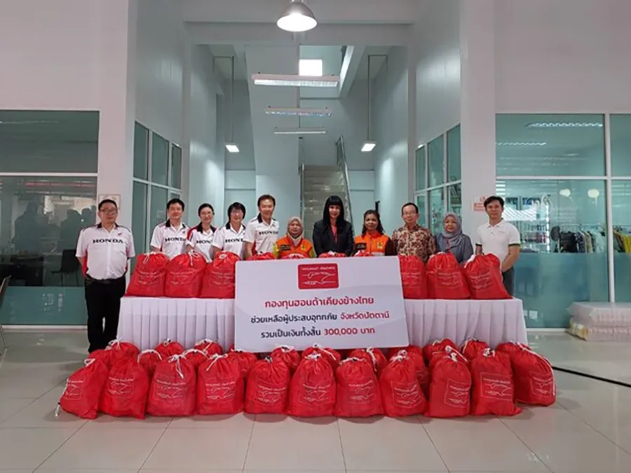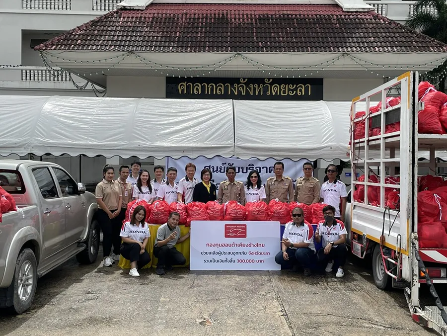 กองทุนฮอนด้าเคียงข้างไทย ผนึกกำลังผู้แทนจำหน่ายรถยนต์และรถจักรยานยนต์ ร่วมส่งมอบถุงยังชีพ 2,400 ถุง ช่วยเหลือผู้ประสบอุทกภัยในพื้นที่ภาคใต้ 4 จังหวัด รวมมูลค่ากว่า 1.2 ล้านบาท