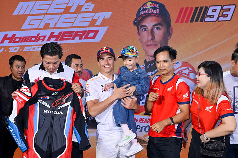 โดย มร.ชิเกโตะ คิมูระ ประธานกรรมการบริหาร ไทยฮอนด้า ให้การต้อนรับอย่างอบอุ่น และมอบของขวัญสุดพิเศษจาก “ไทยฮอนด้า” ให้กับมือของ มาร์เกซ ขณะเดียวกันยังเซอร์ไพรส์ผู้เข้าร่วมงานทั้ง 40 คน ด้วยของขวัญพร้อมลายเซ็นจากมือของ “มาร์ค มาร์เกซ” ซึ่งสร้างความประทับใจให้กับทุกคนภายในงานอย่างมาก