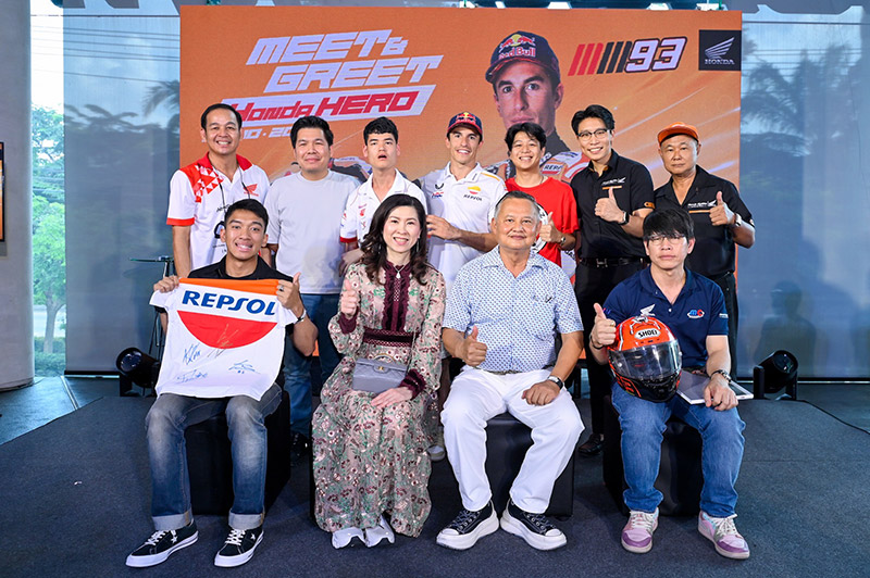 ปิดท้ายกิจกรรมครั้งนี้ด้วยการถ่ายภาพหมู่ร่วมกัน โดยมี “มาร์ค มาร์เกซ” เป็นพระเอกของงาน พร้อมด้วย ดร.อารักษ์ พรประภา ประธาน บริษัท ไทยฮอนด้า จำกัด ร่วมกับ มร.ชิเกโตะ คิมูระ ประธานกรรมการบริหาร ไทยฮอนด้า และลูกค้าผู้ร่วมงาน 40 คน ยอดนักบิดไทย 2 คน อย่าง “ก้อง” สมเกียรติ จันทรา และ “ก๊องส์” ธัชกร บัวศรี ก่อนจะเดินทางไปแข่งขันในศึก โออาร์ ไทยแลนด์ กรังด์ปรีซ์ ระหว่างวันที่ 27-29 ตุลาคมนี้ ที่ สนามช้าง อินเตอร์เนชั่นแนล เซอร์กิต จ.บุรีรัมย์