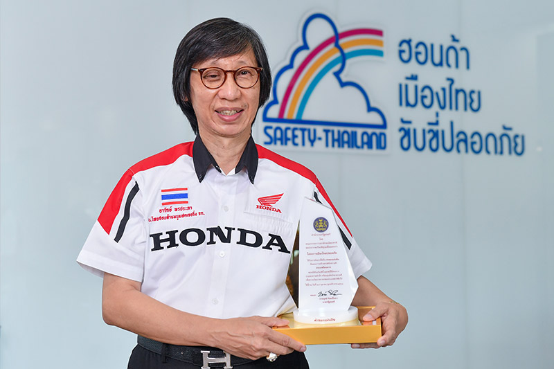 ดร.อารักษ์ พรประภา รองประธานกรรมการบริหาร บริษัท ไทยฮอนด้า แมนูแฟคเจอริ่ง จำกัด เปิดเผยว่า “รางวัลค่าของแผ่นดินถือเป็นสิ่งสะท้อนให้เห็นถึงความสำเร็จจากความมุ่งมั่นในการลดอุบัติเหตุบนท้องถนนมาอย่างต่อเนื่องถึง 33 ปี ด้วยความมุ่งหวังที่จะให้สังคมไทยเป็นสังคมที่มีความปลอดภัย ที่ผ่านมาเราได้บุกเบิกการรณรงค์ขับขี่ปลอดภัย และเผยแพร่ความรู้ในด้านนี้ภายใต้โครงการฮอนด้าเมืองไทยขับขี่ปลอดภัย (Safety Thailand) ทั้งการพัฒนาหลักสูตรการขับขี่ปลอดภัยที่เหมาะสมกับสภาพจราจรในประเทศไทย ควบคู่ไปกับการผลิตครูฝึกขับขี่ปลอดภัยเพื่อถ่ายทอดความรู้ให้กับประชาชนในทุกจังหวัดทั่วประเทศ เช่นเดียวกับการสร้างศูนย์ฝึกขับขี่ปลอดภัยในทุกภูมิภาคโดยร่วมมือกับร้านผู้จำหน่ายฯ สถานศึกษา และหน่วยงานของภาครัฐ รวมไปถึงการปลูกจิตสำนึกสาธารณะในการใช้รถใช้ถนนให้กับผู้ใช้รถจักรยานยนต์ทั่วไป เพื่อให้สังคมไทยเป็นสังคมที่มีความปลอดภัยอย่างแท้จริง และจากนี้ไปเราก็จะยังคงมุ่งมั่นอย่างไม่ลดละตามแนวทางของฮอนด้ามอเตอร์ที่ต้องการลดอัตราการเสียชีวิตจากอุบัติเหตุทางถนนจากยานยนต์ฮอนด้าลดครึ่งหนึ่งภายในปี 2030”