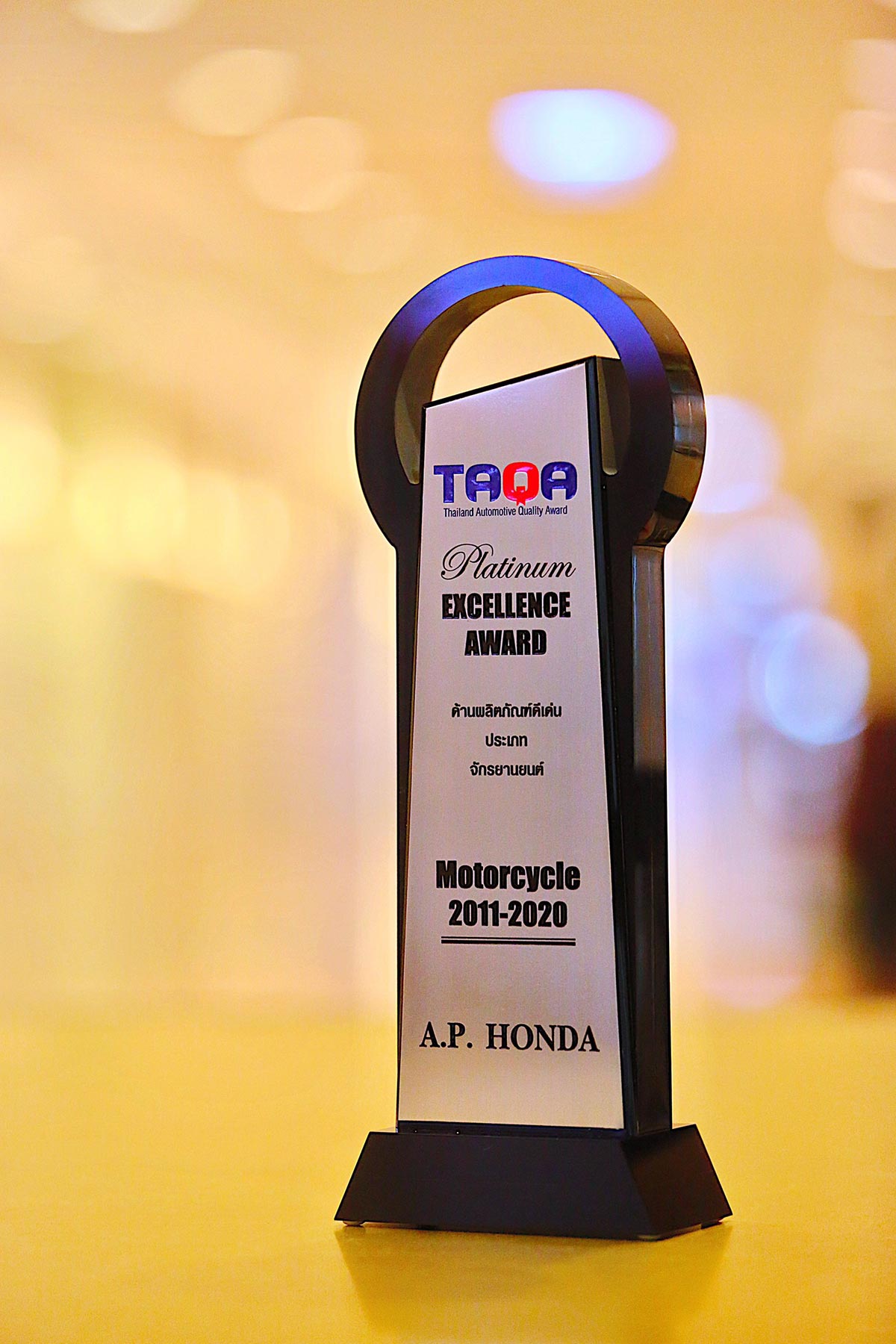 เอ.พี. ฮอนด้า ผงาดคว้าสุดยอดรางวัลธุรกิจยานยนต์ยอดนิยม ประจำปี 2563 หรือ THAILAND AUTOMOTIVE QUALITY AWARD 2020 (TAQA 2020) จากผลสำรวจของผู้บริโภคทั่วไทย ยกให้เป็นแบรนด์รถจักรยานยนต์อันดับที่ 1 ในใจมหาชนติดต่อกัน 10 ปีซ้อน ขณะเดียวกัน ยังสามารถคว้ารางวัล Platinum Excellence Award รางวัลสำคัญในด้านการเป็นแบรนด์รถจักรยานยนต์แบรนด์เดียวที่มีภาพลักษณ์ดีเด่นและน่าเชื่อถือ (Trusted Brand) พร้อมด้วยความรับผิดชอบต่อสังคม และสามารถตอบโจทย์ความต้องการของผู้บริโภคได้ดีที่สุด ครบรอบหนึ่งทศวรรษด้วยเช่นกัน