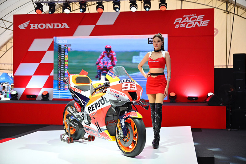 เริ่มต้นที่ไฮไลท์สำคัญกับบูธ Honda Exhibition Hall นำเสนอวิวัฒนาการของรถแข่ง Honda RC213V จากอดีตถึงปัจจุบัน ด้วยรถแข่งคันจริง Honda RC213V ปี 2013 ที่พา “มาร์ค มาร์เกซ” คว้าแชมป์โมโตจีพีครั้งแรกมาจัดแสดงพร้อมด้วย Honda RC213V ปี 2019 รถที่มาร์เกซคว้าแชมป์โลกสมัยที่ 8 รวมถึง RC213V ปี 2022 ที่ยังไม่เคยจัดแสดงที่เมืองไทยมาก่อน พร้อมกันนี้ฮอนด้ายังได้จัดโชว์เคส Honda RC213V-S ในแบบเปลือยให้เห็นโครงสร้างของรถเป็นครั้งแรกอีกด้วย