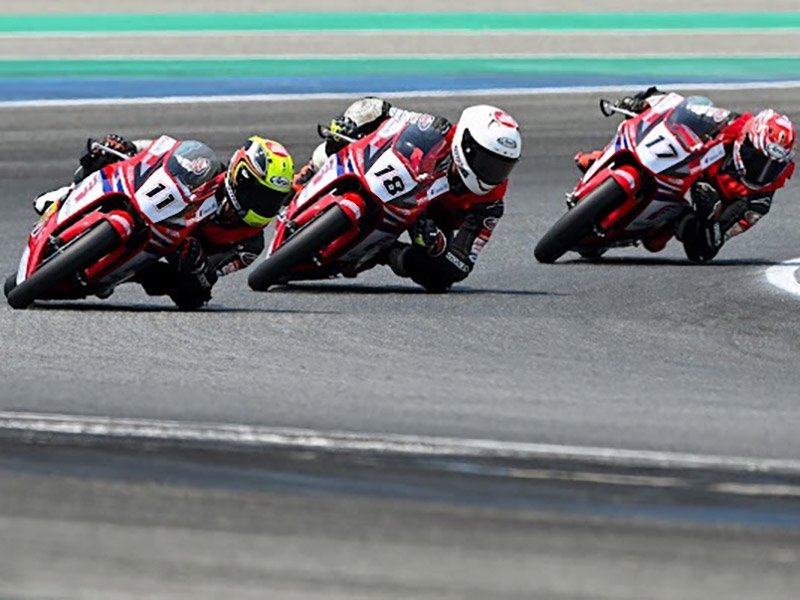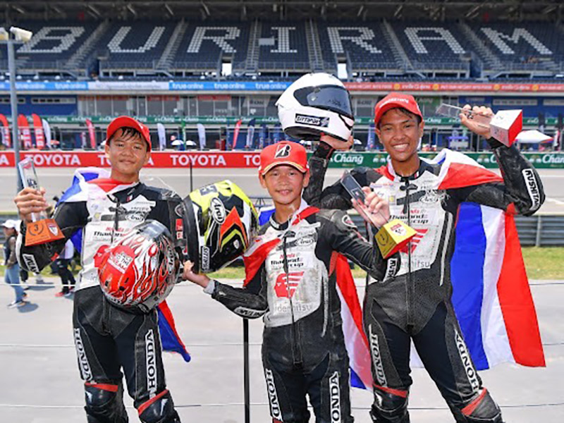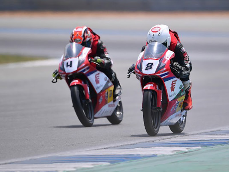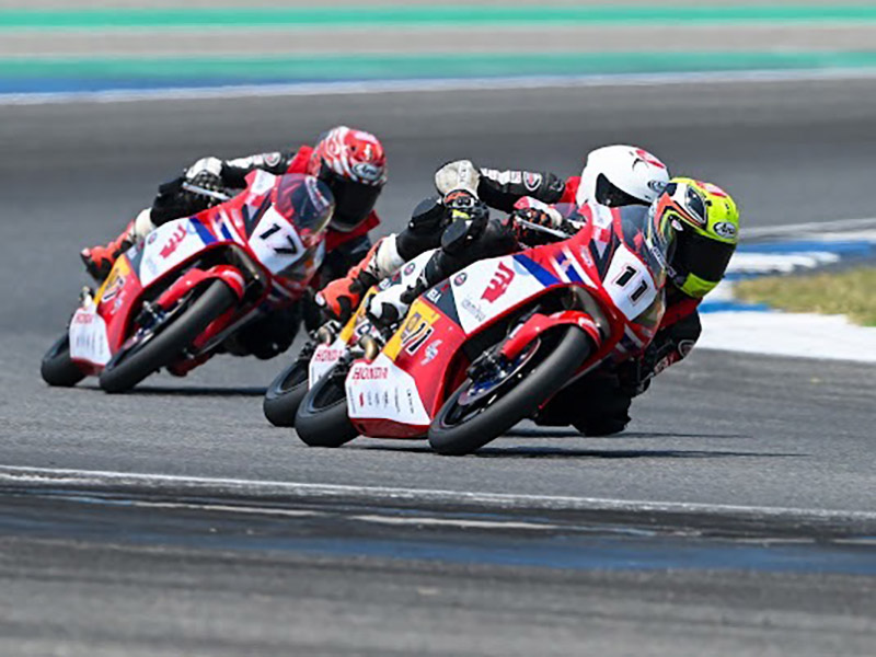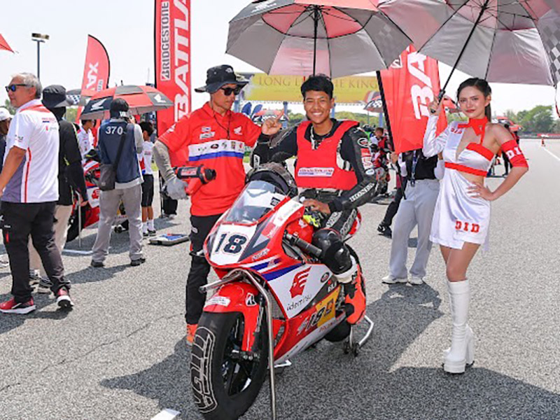 นักบิดเยาวชนไทยโชว์ทักษะบิดรถแข่ง Honda NSF250R จาก HRC ทำผลงานในการแข่งขัน 2 เรซ รายการ “Honda Thailand Talent Cup 2024” สนามแรก นำโดย “ไบร์ท” เตชินท์ เจ้าของรถหมายเลข 11 ทำผลงานครองชัยชนะกวาดดับเบิ้ลโพเดียม ตามด้วย “ไฮเปค” กฤษฎา เจ้าของรถหมายเลข 18 คว้าดับเบิ้ลท็อป 2 ขณะที่โพเดียมตำแหน่งที่ 3 เรซที่ 1 ได้แก่ “อุ้ม” นพรุธพงษ์ เจ้าของรถหมายเลข 8 และ เรซที่ 2 ได้แก่ “กัน” พชรกร เจ้าของรถหมายเลข 17 ที่ สนามช้าง อินเตอร์เนชั่นแนลเซอร์กิต จังหวัดบุรีรัมย์ ภายใต้ศึก Plan B Media BRIC Superbike เมื่อวันที่ 5-7 เมษายน ที่ผ่านมา