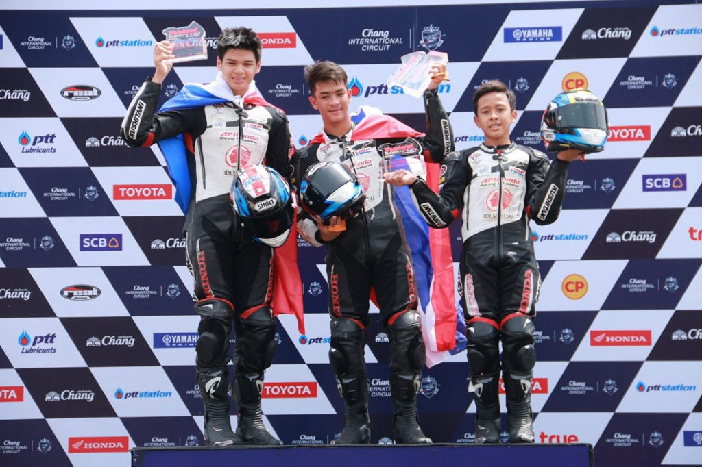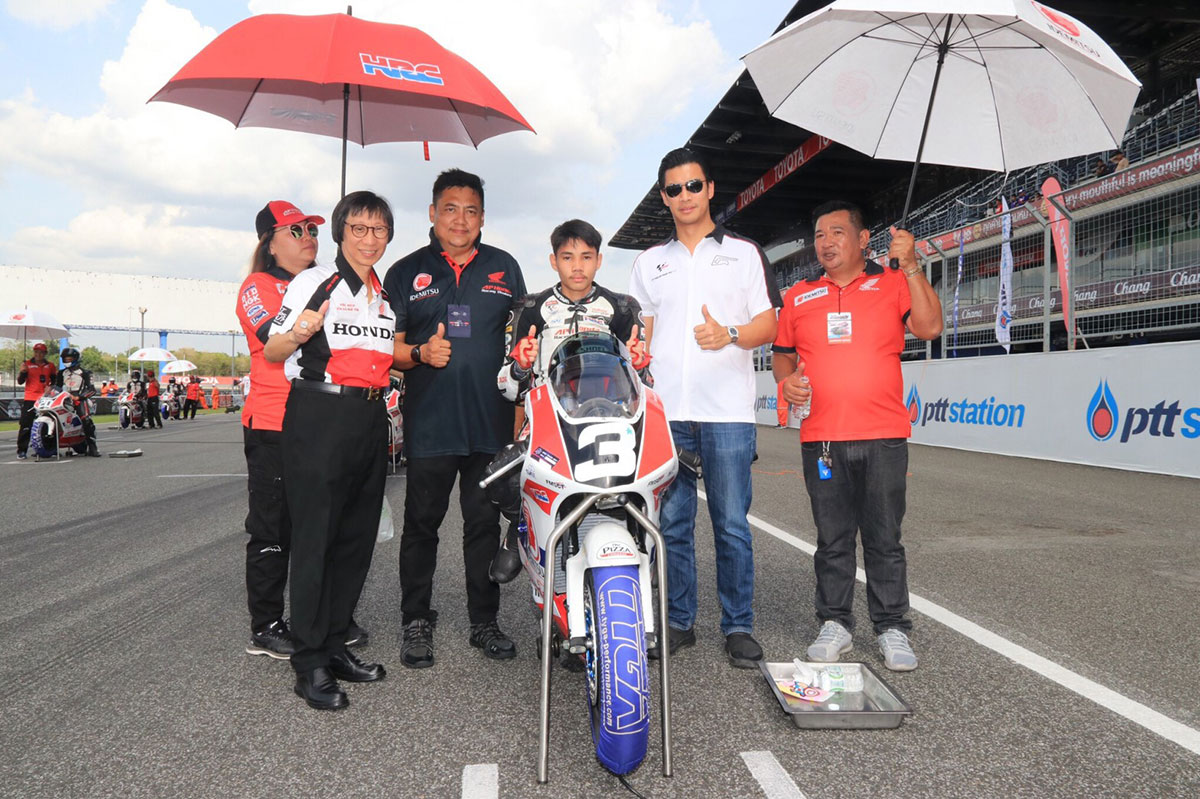 เอ.พี.ฮอนด้า สานฝันให้กับเยาวชนไทยต่อเนื่อง เริ่มต้นด้วยความยอดเยี่ยมของสองดาวบิดอนาคตไกล บุญชัย ประยูรญาติ ควบรถคู่ใจ Honda NSF250 หมายเลขใหม่ 3 คว้าตำแหน่งโพลโพซิชั่นและ วัชรินทร์ ทับทิมอ่อน หมายเลข 4 จากโครงการ “เรซ ทู เดอะดรีม” สปิริตไทยท้าทายสู่ฝัน ซึ่งคว้ากริดออกตัวได้ในแถวที่ 3