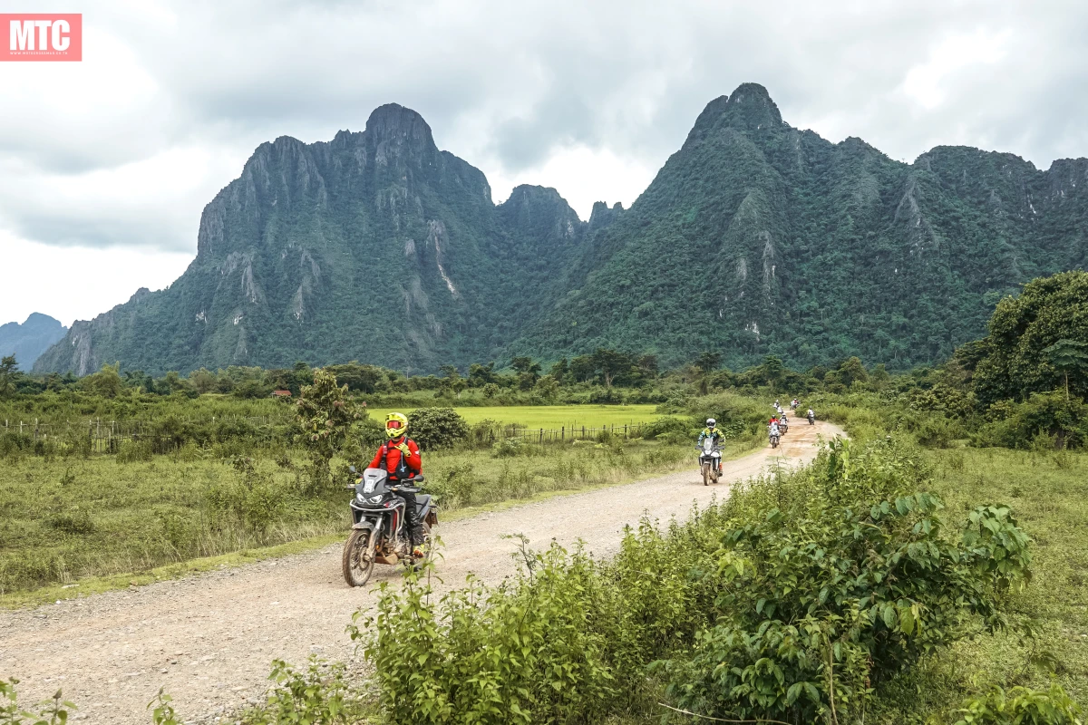 สำหรับวันที่ 2 จุดหมายแรกของเราคือเส้นทาง Off – Road บริเวณเส้นทางธรรมชาติที่สวยงามในเมืองวังเวียง ข่าวดีคือ อากาศยามเช้าแจ่มใสมาก ทว่าก็มีข่าวร้ายด้วยคือ ฝนพึ่งหยุดตอนเช้ามืดหลังจากตกลงมาตลอดทั้งคืน แต่ไม่ว่ายังไงเราก็ต้องไปกันต่อ