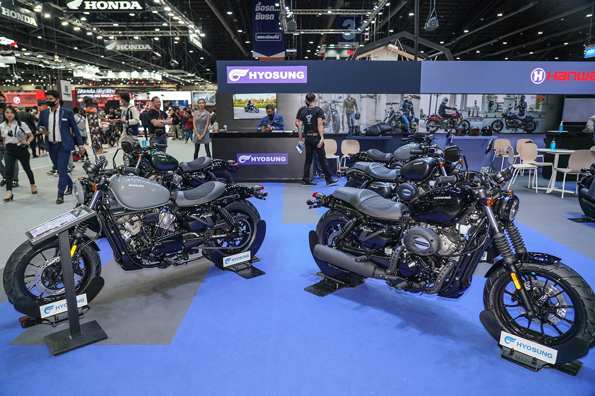 ยังคงเดินหน้าลุยตลาดประเทศไทยอย่างต่อเนื่องสำหรับ HYOSUNGแบรนด์รถจักรยานยนต์ “สัญชาติเกาหลีใต้” ที่สโคว์ มอเตอร์ได้รับสิทธิ์ในการผลิต และจัดจำหน่ายในประเทศไทย ความโดดเด่นของ HYOSUNG คือการเป็นรถครุยเซอร์ที่ใช้เครื่องยนต์ V-Twinในพิกัดเล็กไม่เกิน 300 ซีซี. พร้อมกับดีไซน์ที่สวยงาม ปีนี้ HYOSUNGเข้าร่วมการจัดแสดงรถในงาน Motor Expo 2020 พร้อมกับแนะนำ Aquila GV300S เครื่องยนต์พิกัด 300 ซีซี.โดยเป็นรถสไตล์บ็อบเบอร์ของ HYOSUNG ที่มาให้เลือกถึงสี คือ Night Black, Matt Black , Olive Green , Wolf Grey เรียกเสียงฮือฮาและเป็นที่สนใจของสื่อมวลชนและผู้บริโภคชาวไทย กับราคา 158,000 บาท แถมฟรีค่าจดทะเบียน+พรบ. ,กล้องAction cam Go Pro7 Silver และ Gift set หมวกกันน็อกโดยเพิ่มความน่าเล่นของAquila GV300s V-twin ด้วยชุดแต่งตรงรุ่นของ Aquila GV300S มาจัดแสดงโชว์ด้วย ถือว่าเป็นแนวทางสำหรับคนที่สนใจมอเตอร์ไซค์เกาหลีใต้แบรนด์นี้ได้อย่างดี