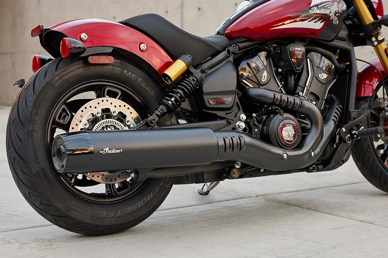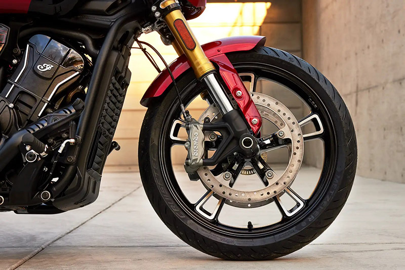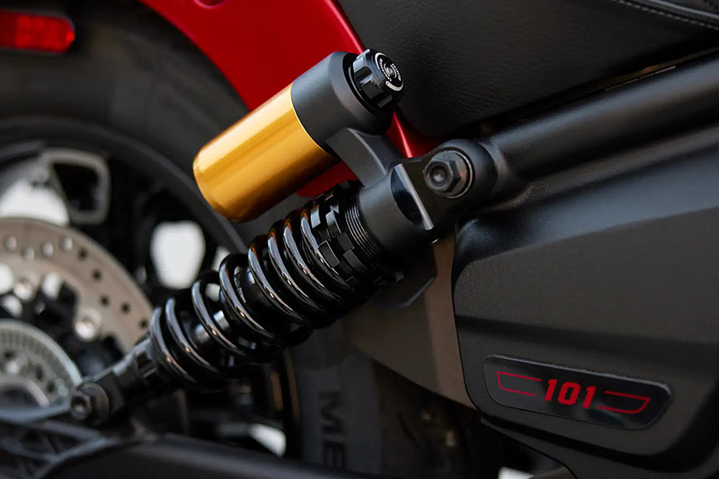4.ระบบกันสะเทือน Indian 101 Scout ปี 2025 เป็นแบบ “ปรับได้” ทั้งหน้าหลัง คู่โช้คหน้าหัวกลับขนาดแกน 43 มม. ส่วนโช้คหลังคู่แบบมีซับแทงค์ วางองศาเอียงและสามารถปรับค่าได้เต็มที่ทั้งรีบาวด์-สปริงพรีโหลด