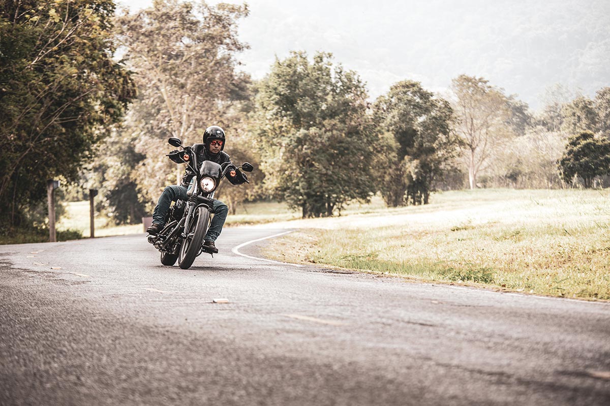 หนึ่งในคาแรคเตอร์ที่สำคัญของ IRON1200 คือ “แฮนด์” บอกเลยว่าแฮนด์แบบยกสูง มันหลอกตาคนที่ไม่ได้ขี่ว่ามันอาจจะคุมยาก เอาจริงๆแฮนด์กับตำแหน่งเบาะเดี่ยวแบบนี้แหละครับที่คอนโทรลรถง่ายมาก ผมว่าเป็นความสอดคล้องบนแนวทาง Sportster ที่ชื่อก็บอกอยู่แล้วว่า “ฟีลสปอร์ต” ถึงรถจะหนัก แต่มันก็ชดเชยด้วยความเพรียวบางและคล่องหลายสิบโค้งกับเส้นทางสายรองที่มาร์แชลจัดให้ ผมไปกับ IRON1200 ได้ฉลุย แต่ก็มีลิมิตอยู่ที่ “พักเท้าขูดพื้น” ซึ่งหมายถึงจะพับลงมากกว่านี้คงไม่ได้ละ ส่วนการงานในเมืองบอกได้เลยว่าสบายครับ ซอกแซกเลี้ยวง่าย คล่องเพราะแฮนด์ไม่กว้าง