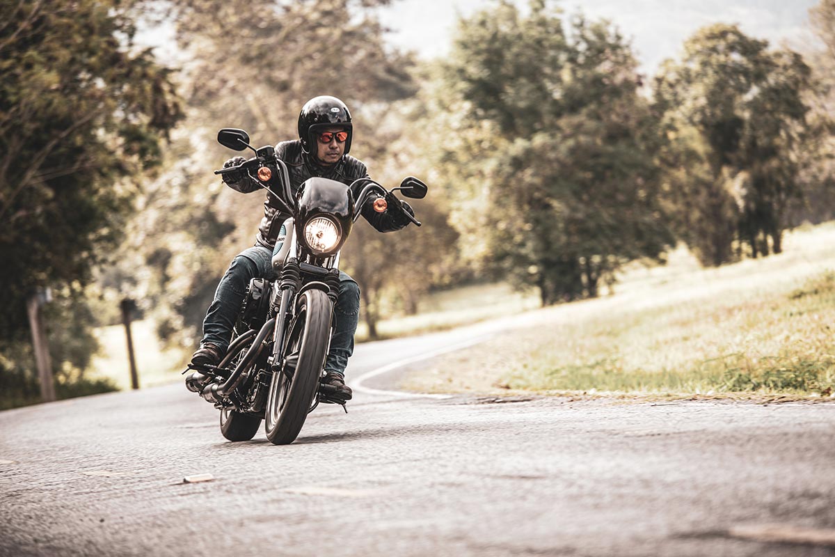 สัมผัสแรกกับ IRON1200 เริ่มขึ้นด้วยการสั่งสตาร์ทเครื่องด้วยปุ่มที่ทำงานระบบคีย์เลส อาการเครื่องรอบเดินเบาโครมครามสื่อถึงความเป็นฮาร์ลีย์-เดวิดสัน ชัดเจนครับ จังหวะสับเกียร์ได้ยินเสียงเฟืองขบดัง “เคร้ง” เป็นเสียงที่สะใจไปทุกๆเกียร์เลย เครื่องยนต์ EVO “เสื้อลม” ลูกนี้ขนาด 1,202 ซีซี. ให้แรงบิดที่จัดจ้าน ชู๊ตคันเร่งได้สนุก ที่น่าสนใจมากๆอยู่ที่ช่วงเกียร์ 3 – 4 – 5 ให้ช่วงเกียร์กว้าง ช่วงตีนปลายผมว่าอัตราทดของ IRON1200 ออกแบบเอื้อต่อการเลี้ยงคันเร่งรอรอบ ขณะที่ตัวบาล๊านซ์ข้อเหวี่ยงก็ทำได้ดีมาก เพราะรถที่แรงบิดสูงขนาดนี้ หลายจังหวะที่ยกคันเร่งแล้วเชนจ์ดาวน์หนักๆลงมาก่อนเข้าโค้ง อาการของรถสมูทเกินคาดแทบไม่เจออาการท้ายปัดและความสะท้านของเครื่องมีเพียงรอบต่ำเท่านั้น ในรอบสูงแบบหวดรวดเดียวเป็นร้อยกม.อาการมือชาไม่มาให้รำคาญนะ