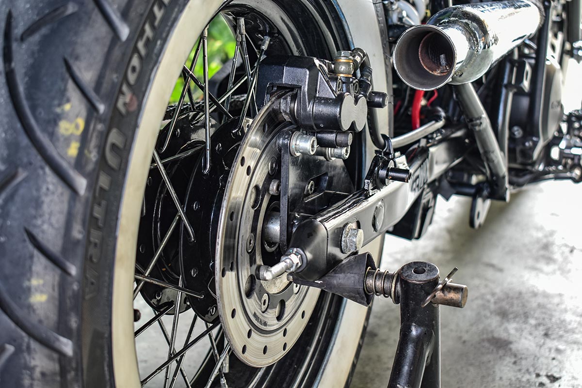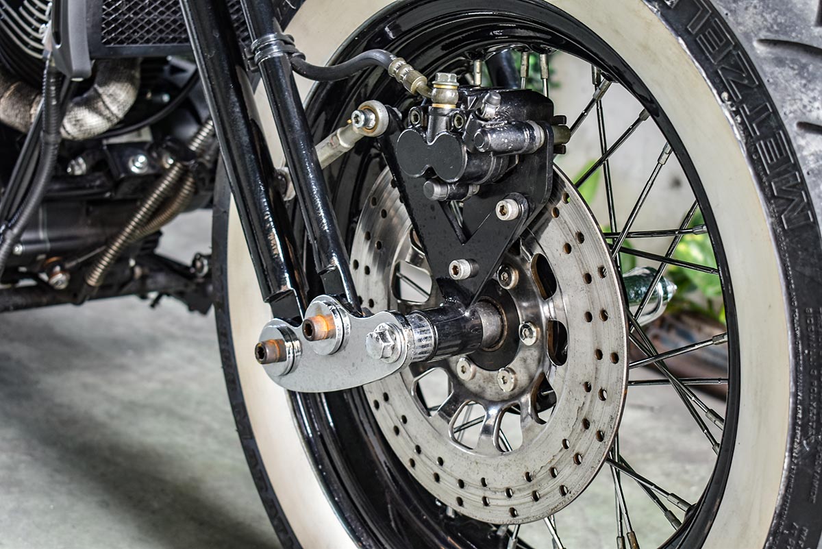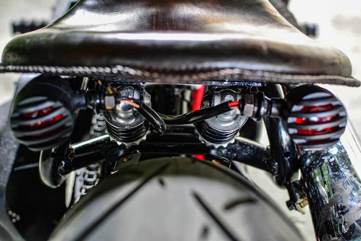 พักเท้าแบบฟอร์เวิร์ด ให้ท่วงท่าการขี่ดูโก้ขึ้น วงล้อยกขอบแบบซี่ลวดสีดำรัดขอบด้วยยางสตรีทขอบขาว เพิ่มความคลาสสิค ขนาด 17 นิ้ว หน้า/หลัง โช้คอัพหลังเดี่ยว สวิงอาร์มเหล็กและที่ยึดแผ่นป้ายทะเบียนท้ายที่ถูกรังสรรค์ออกมาได้อย่างดี ตามด้วยเสียงคำรามที่เร้าใจด้วยท่อไอเสียปลายแจกัน ตีออกด้านข้าง และครอบแครงค์ด้านซ้ายให้ความดุดันและได้อารมณ์ถึงอเมริกันช๊อปเปอร์มากขึ้นถือได้ว่าเป็นงานชิ้นเอกในการคัสตอมทั้งคันกับสไตล์ อเมริกัน บ๊อปเบอร์ ที่ได้ทั้งความสวย และความเท่ โดยทางสำนักแต่ง Jumper Shopที่มีคุณคชาญนัษณน์ เรื่องวิริยานนท์ เป็นผู้สร้างสรรค์งาน