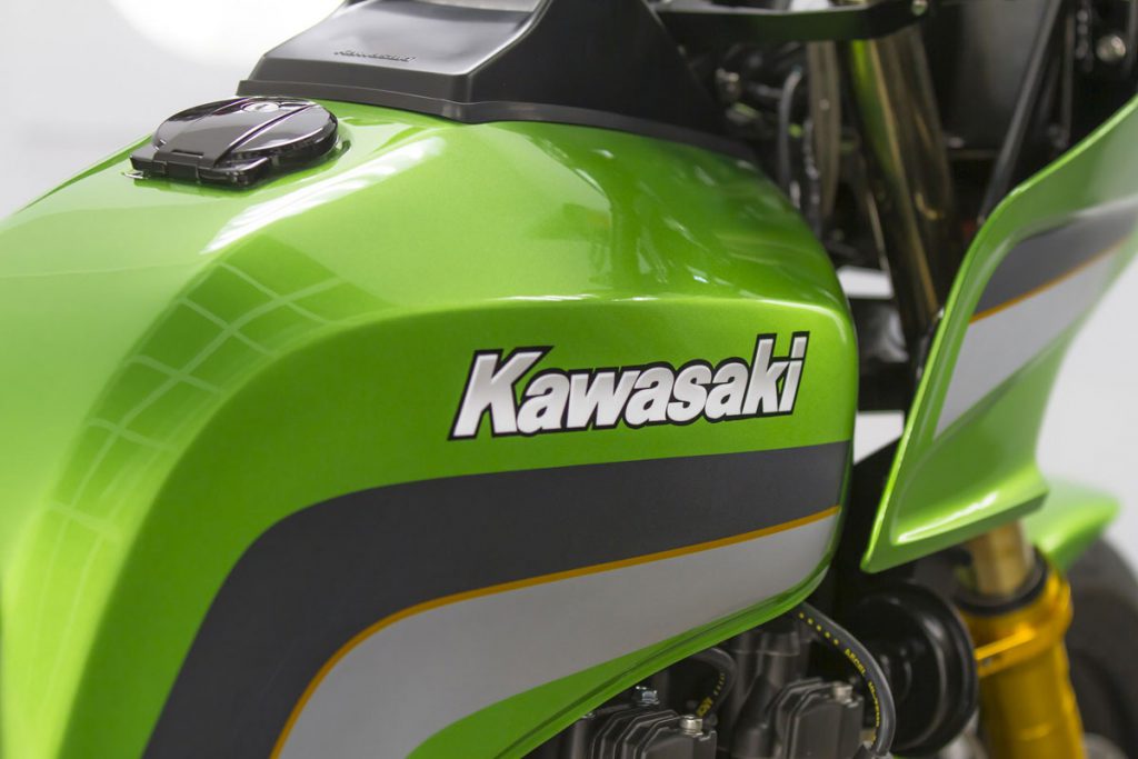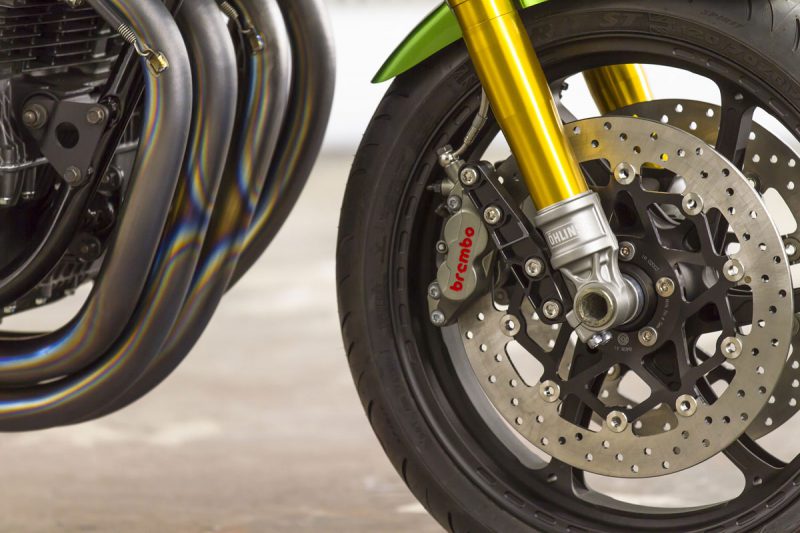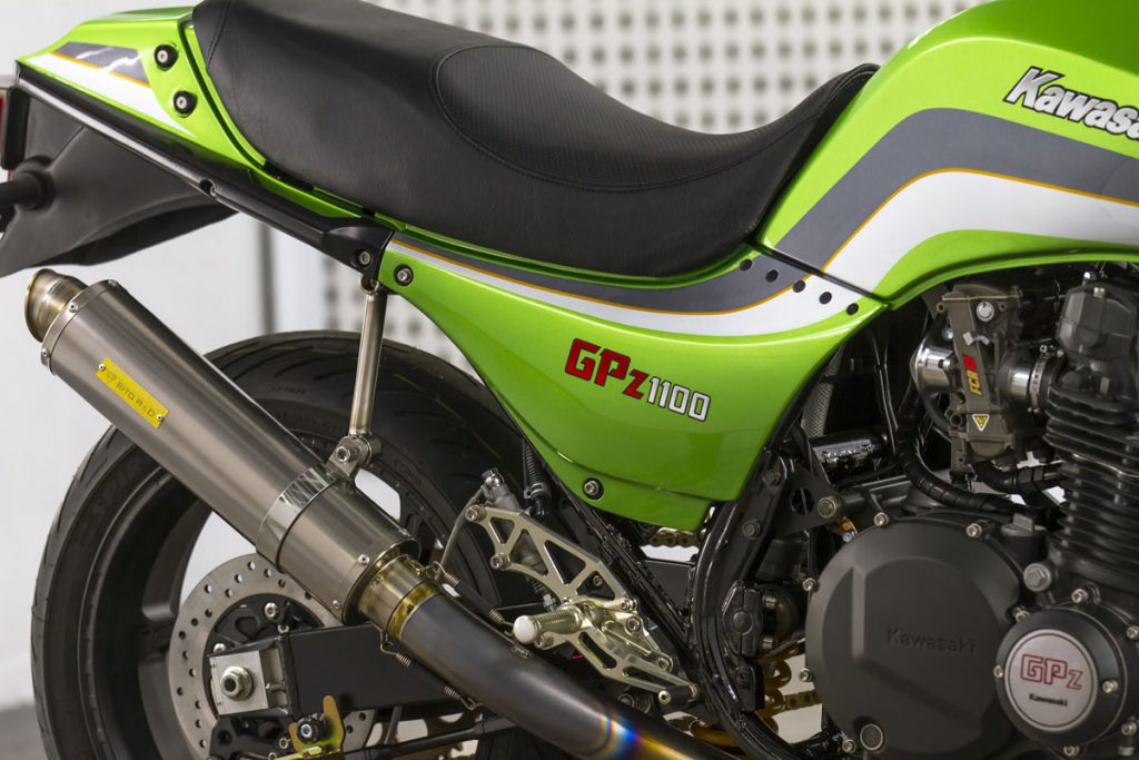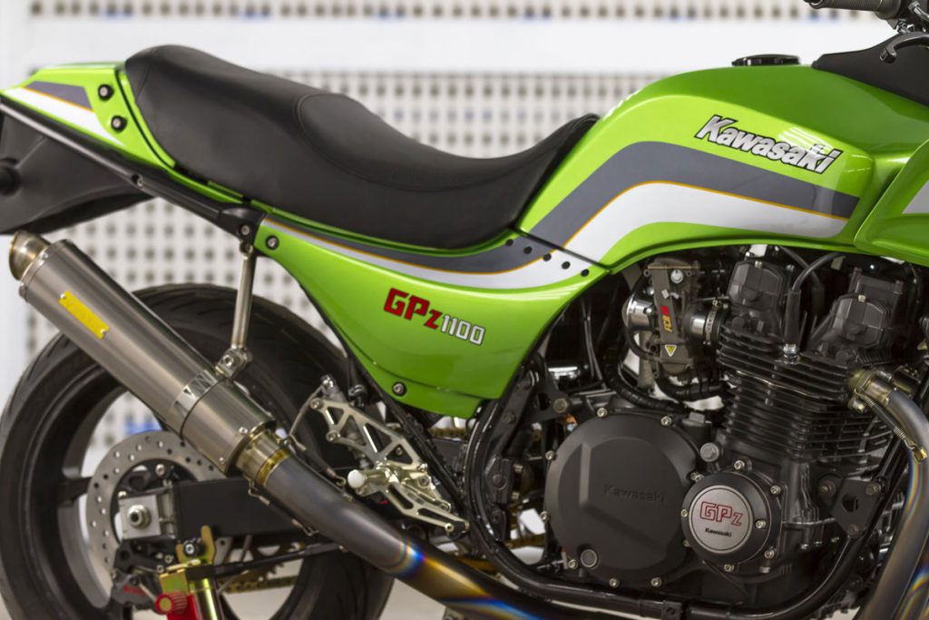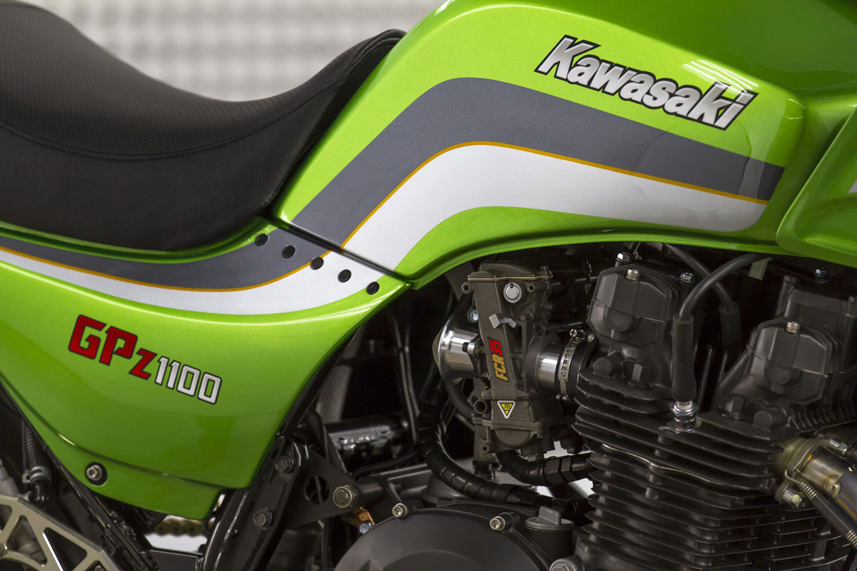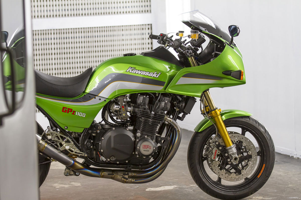 เรื่องบอดี้พาร์ท มีเสริมงานคาร์บอนไฟเบอร์มาที่กระจกมองข้างแฮนด์LSL ใส่ปลอกแฮนด์Pro Grip ไมล์จาก KOSOสิ่งที่Darrenเล่นใหญ่อีกชุดคือจับสวิงอาร์มของ Suzuki GSX-R600 มาแปลงลงKawasakiได้เหมาะเจาะจากนั้นเลือกระบบกันสะเทือนของOhlins ล้ออลูมิเนียมแบบฟอร์จจากOZ Racing เสริมชุดเกียร์โยงงาน CNC งามๆ และสุดท้ายคือระบบเบรก Bremboซึ่งมายกชุดทั้งปั๊มบน-ล่าง หน้า-หลังจบเรื่องความหล่อของ GPz1100คันนี้ได้ลงตัว