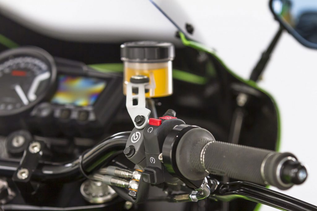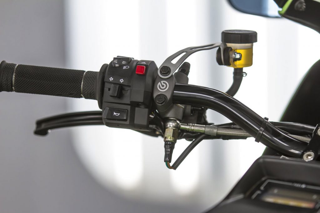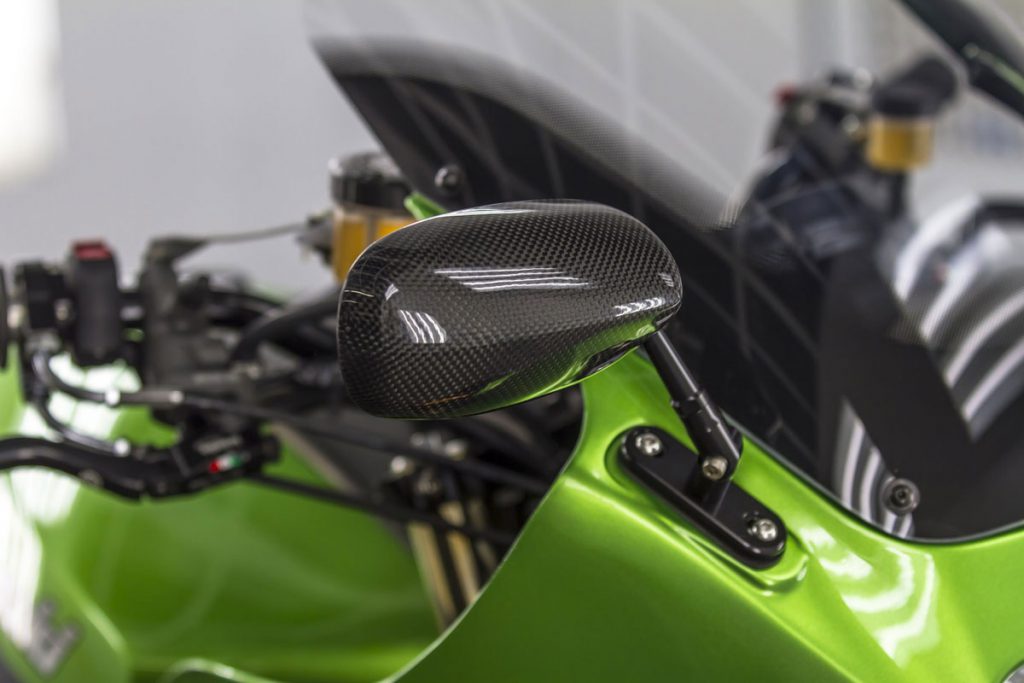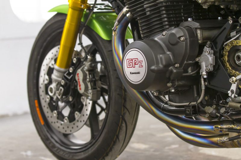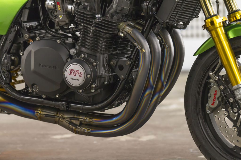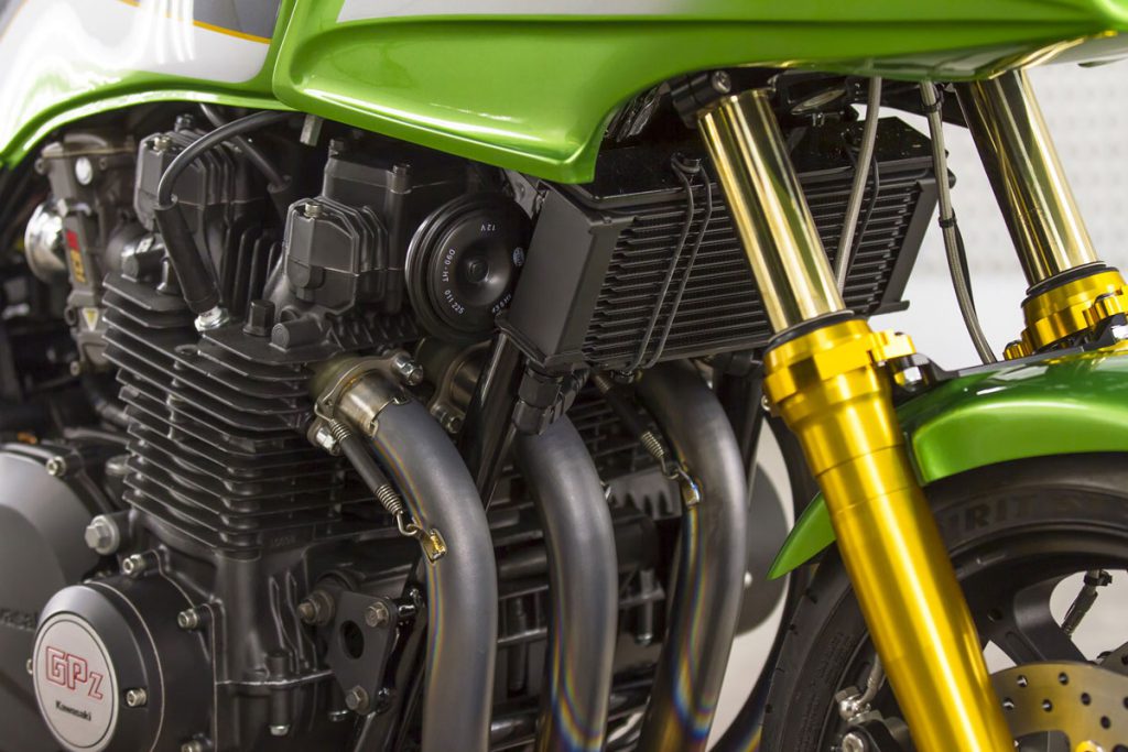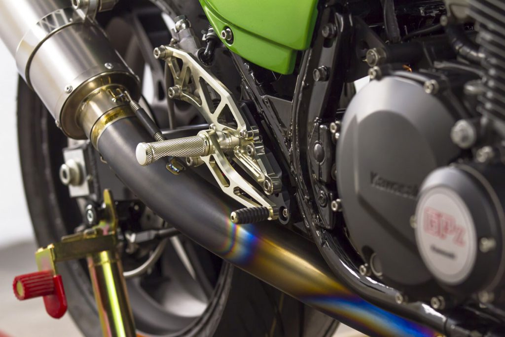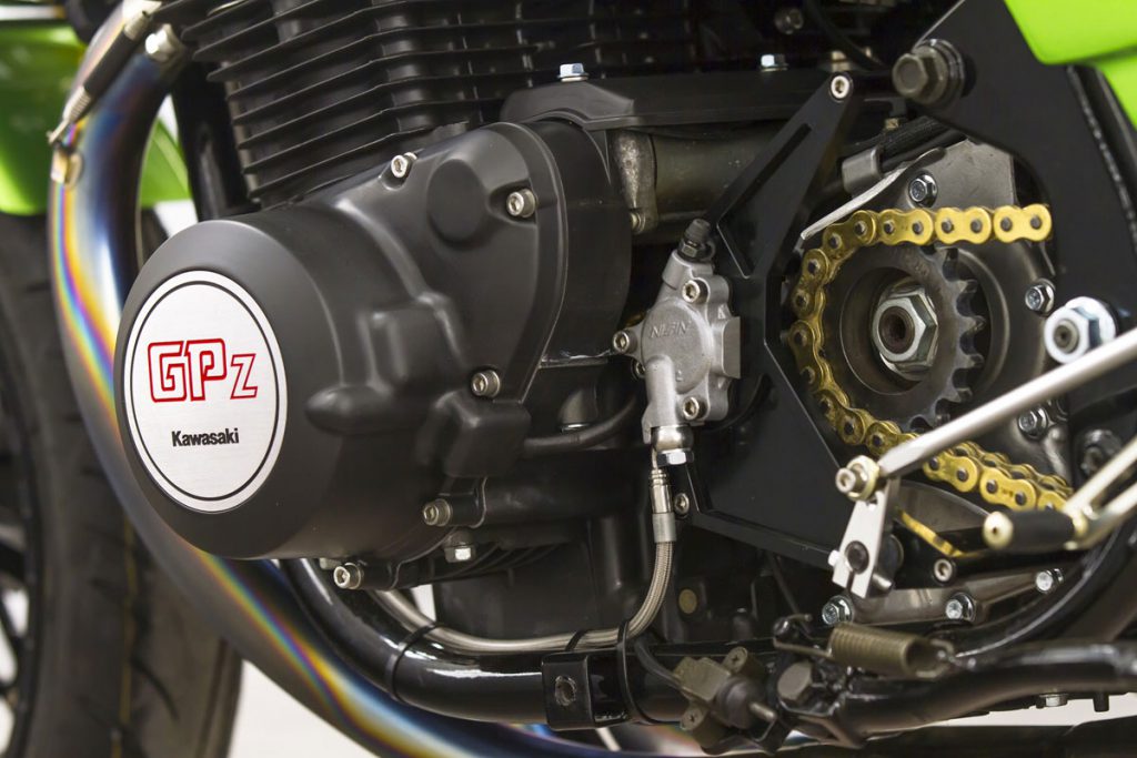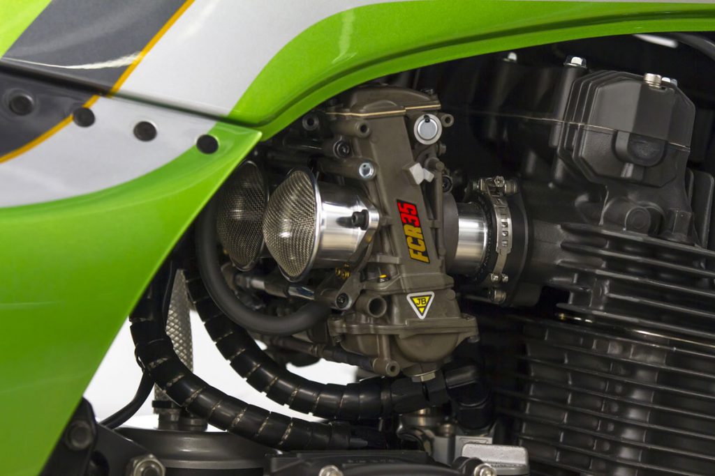 ภายในเครื่องยนต์ ยัดชุดลูกสูบ Wiseco ให้ปริมาตร 1,170 ซีซี. พร้อมแคมชาฟท์ที่ได้รับการอัพเกรดองศามาใหม่ ระบบจ่ายเชื้อเพลิงคาร์บูKeihin FCR ขนาด 35 มม.จาก JB-Power และท่อไอเสียไทเทเนียมBITO R&Dตีขึ้นใหม่เป็น 4 ออก 1 อีกจุดสำคัญคือคลัทช์ถูกเปลี่ยนเป็นคลัทช์น้ำมัน(ไฮดรอลิก)โดย Spieglerและเปลี่ยนสายคลัทช์-สายเบรกเป็นแบบถัก