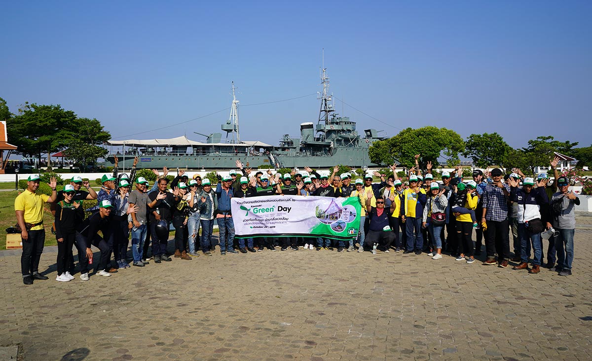 Kawasaki Green day กิจกรรมที่เชิญชวนกลุ่มลูกค้าคาวาซากิ อาทิ Naked Bike (Z Series) / Z900RS / Z900RS CAFE / W800 / W250 / W175 / Vulcan S ร่วมทำความดีเพื่อถวายแด่ในหลวงรัชกาลที่ 10 เนื่องในวันปิยะมหาราช โดยร่วมกันเก็บขยะทำความสะอาดในแหล่งท่องเที่ยวทางประวัติศาสตร์ของ จ.สมุทรปราการ โอกาสนี้ ผู้บริหารของ บริษัท คาวาซากิ มอเตอร์ เอ็นเตอร์ไพรส์ จำกัด ได้กล่าวขอบคุณลูกค้าที่ได้ร่วมทำความดีกับกิจกรรม Kawasaki Green Day และได้ทำการจับคูปองเพื่อมอบของที่ระลึกพิเศษให้กับผู้โชคดีอีกด้วย เรียกได้ว่า ทริปนี้ อิ่มบุญ อิ่มท้อง พร้อมหอบของรางวัลเต็มกระเป๋ากลับบ้านกันเลย