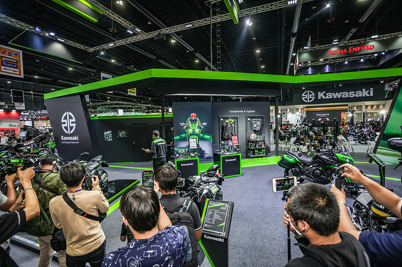 ในงานนี้คาวาซากินำรถจักรยานยนต์รุ่นเรือธง Ninja ZX-10R มาแสดงให้เห็นถึงความสมบูรณ์แบบของวิศวกรรมและเทคโนโลยีได้รับการกล่าวขานมาทั่วโลก รวมถึง Z650RS การสานต่อตำนานตระกูล Z ไฟกลม ที่เสริมไลน์อัพด้วยคลาส 2 สูบเรียง พิกัด 650 ซีซี. ที่เพิ่งเปิดตัวในตลาดประเทศไทยไม่นานมานี้ เช่นเดียวกับ KLR650 ดูอัลเพอร์โพสต์ที่เต็มไปด้วยคาแรคเตอร์นักเดินทางที่แข็งแกร่งเข้าถึงง่ายซึ่งได้รับการตอบรับจากนักบิดชาวไทยเป็นอย่างดี