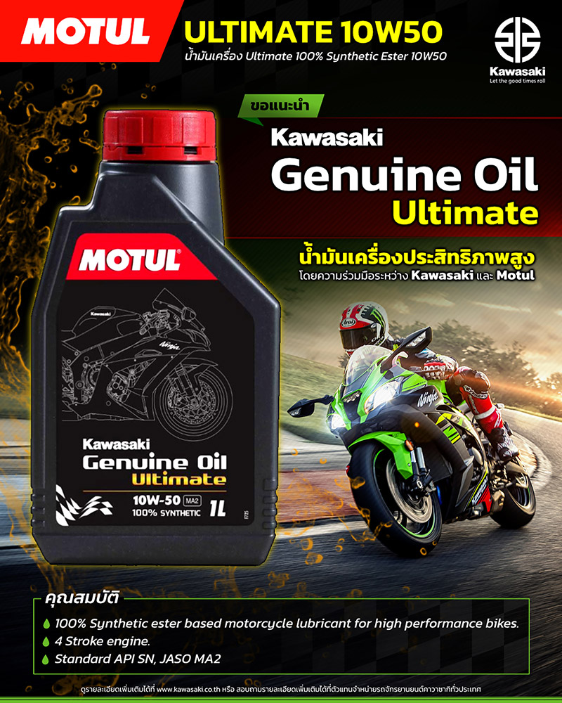นอกจากนี้คาวาซากิได้ร่วมมือกับโมตุลประเทศไทย วางจำหน่ายน้ำมันหล่อลื่นสำหรับรถจักรยานยนต์คุณภาพเยี่ยม ประสิทธิภาพเต็มพิกัดของบิ๊กไบค์ ภายใต้สินค้า Kawasaki Genuine Oil Ultimate 10W50 น้ำมันเครื่อง 100% Synthetic ester รับส่วนลดพิเศษ 10% ภายในงาน Motor Show 2022 เท่านั้น